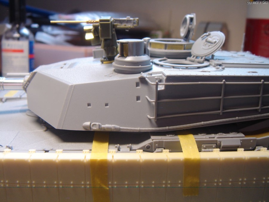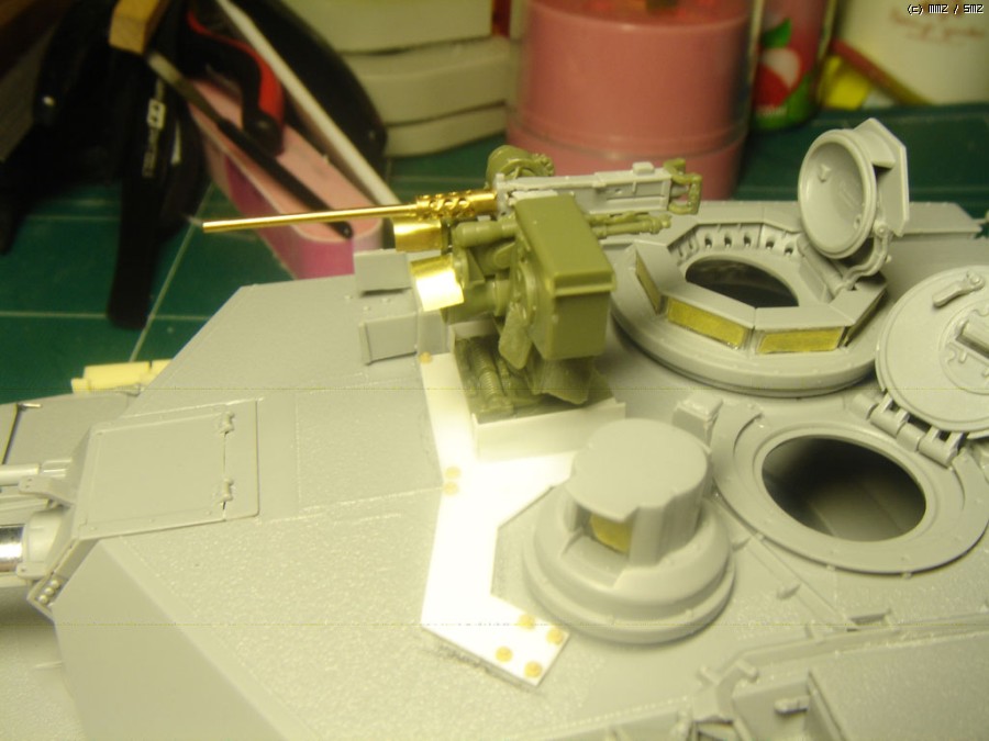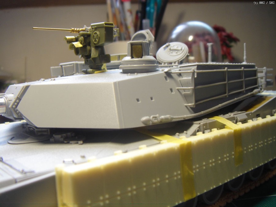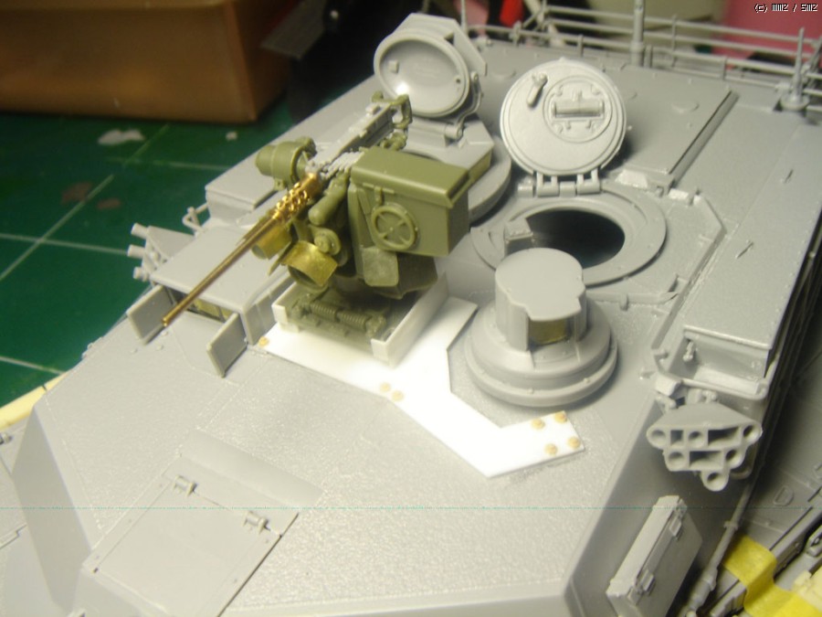 스트라이커에도 달려있는 RWS(Remote Weapon Station)은 M1A2에 장착되기 위해서는 약간의 거치대를 자작해주어야 합니다. 총신을 라이언마르크모델의 별매품으로 바꿔달았는데 무척 마음에 듭니다.