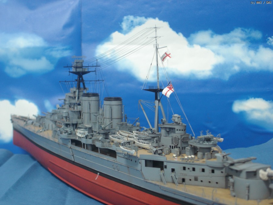 영국전함 후드 입니다 , 키트는 트럼페터사의 제품과 라이언로어사의 에칭을 사용하여 만들었으며 제작기간은 3개월정도 걸리거 같습니다