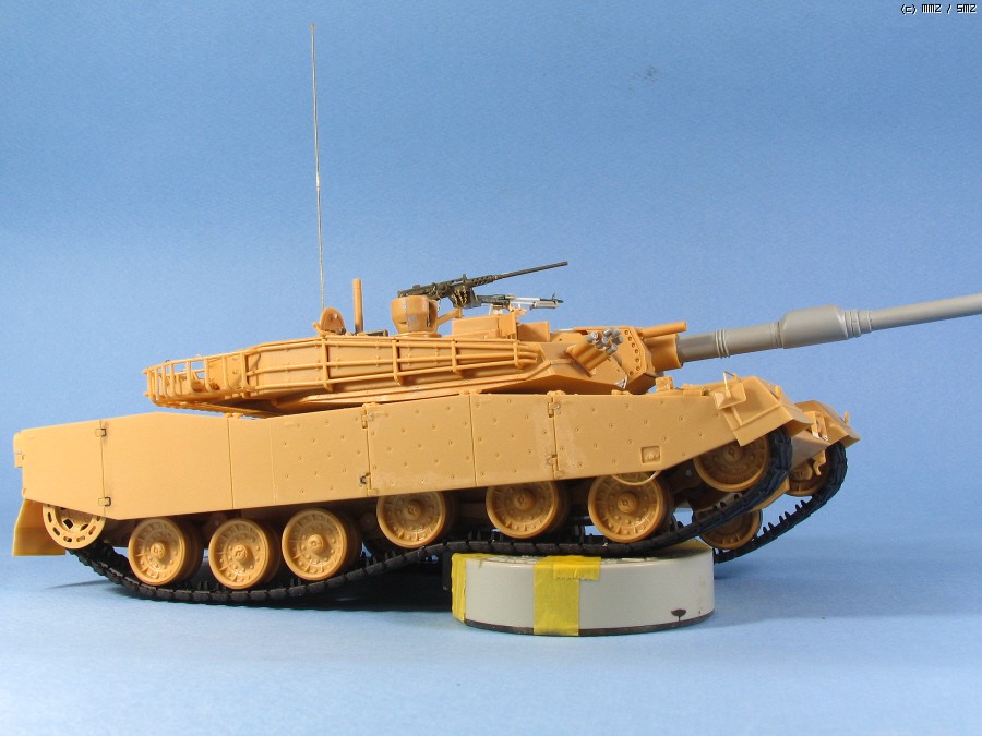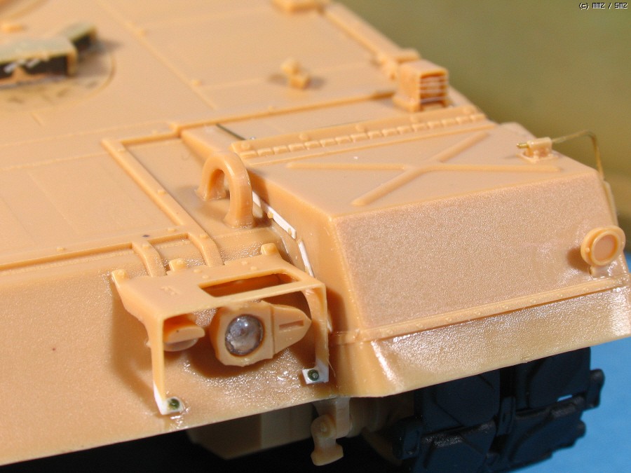 또 아쉬운 부분은 연료 주입구의 몰드가 너무 얕습니다. M1A1을 같이 조립해 보지 않았으면 몰랐을 겁니다. 실차를 보면 M1 보다 납작하지만 그래도...... 도색으로 커버해야지요.