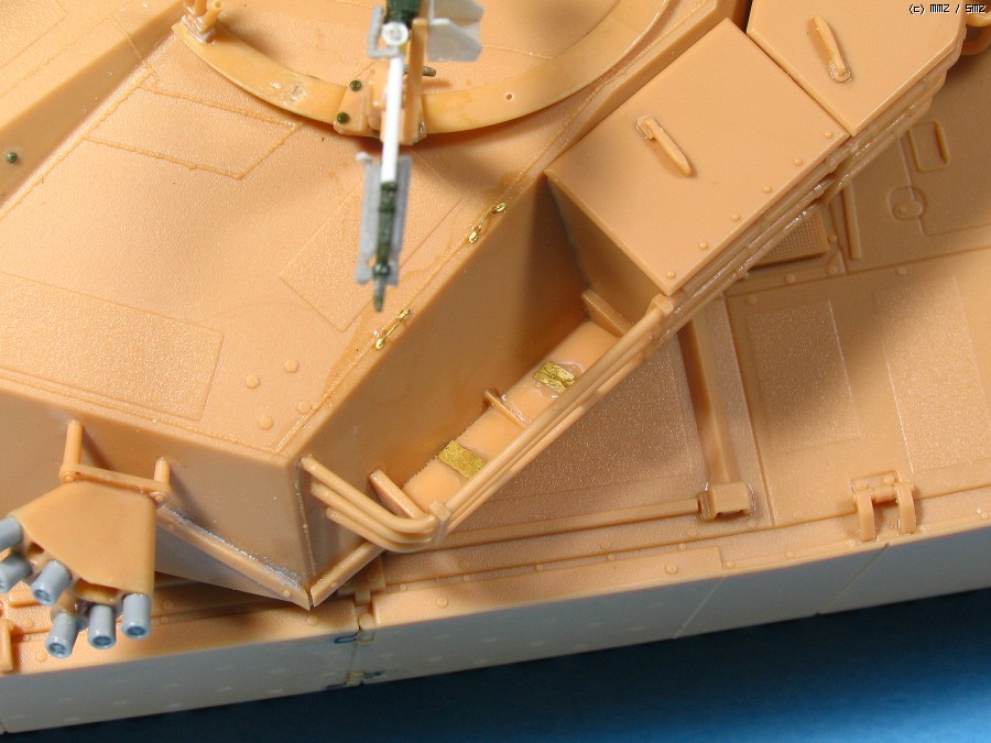 포방패 에칭경첩은 ABER 제품으로 실차량의 경첩과는 달리 매우 단순합니다.실제 K1A1의 경첩은 키트와도 틀린 자작하기도 무척 어려운 모습이더군요...