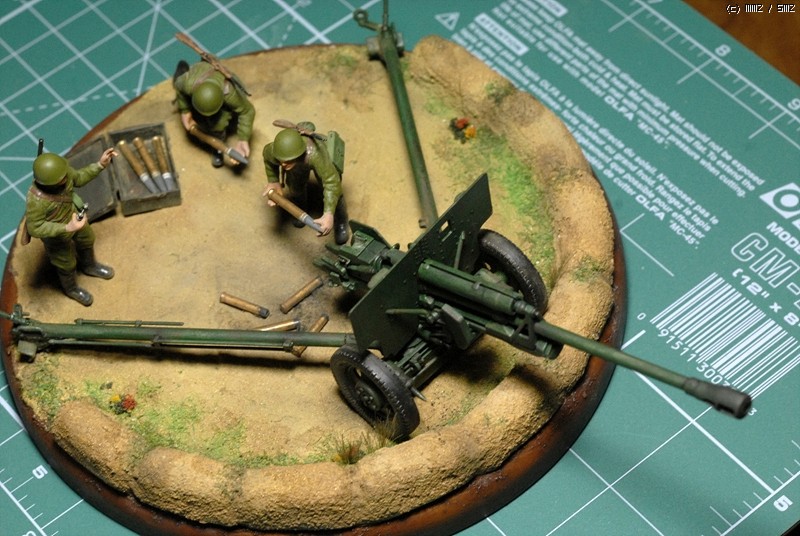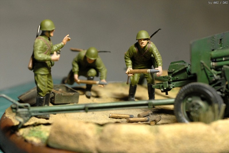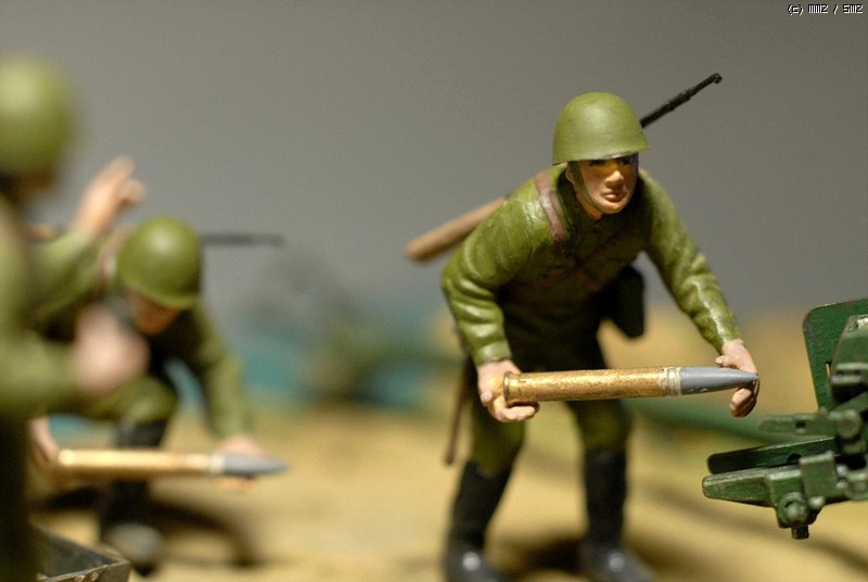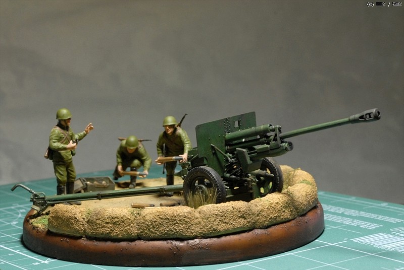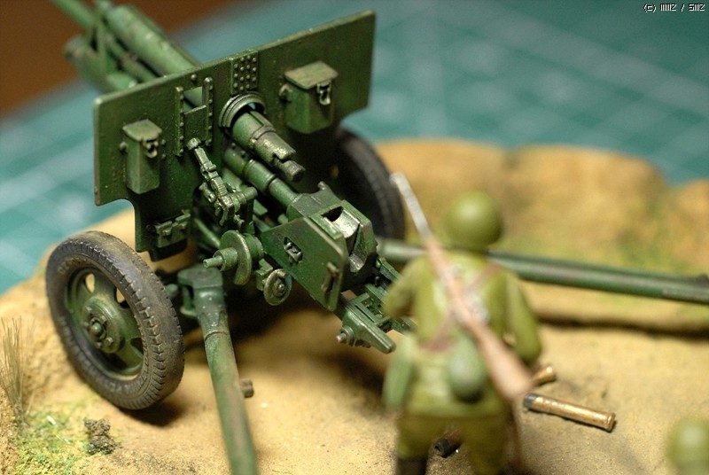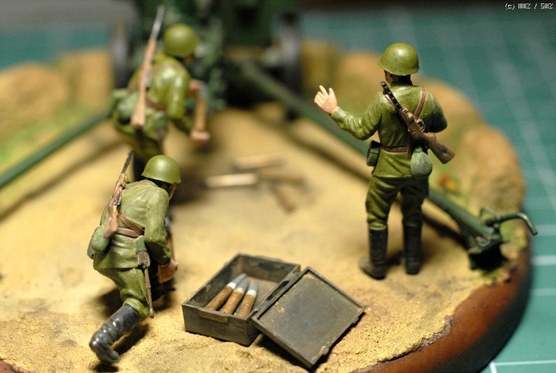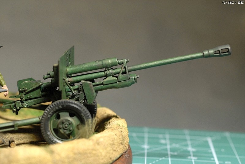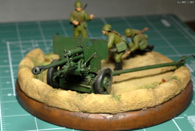 도색은 붓도색을 하였고 비넷의 레진 베이스위에 담장을 쌓아서 포를 겨누는 방법으로 했죠.