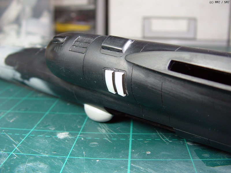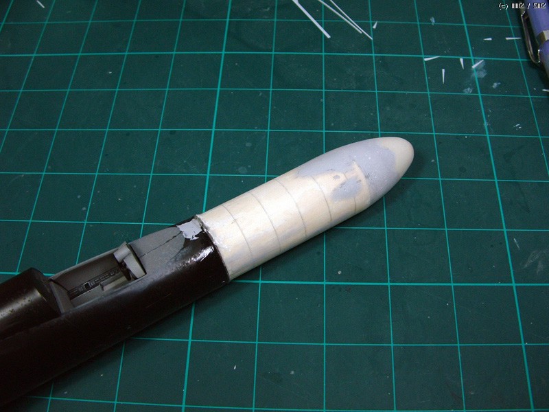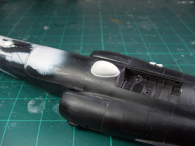 기체 하면의 레이더 안테나 들 중엔 킷에 안들어 있는 것도 있으므로 에폭시 퍼티나 프라판 등으로 제작해 줍니다.