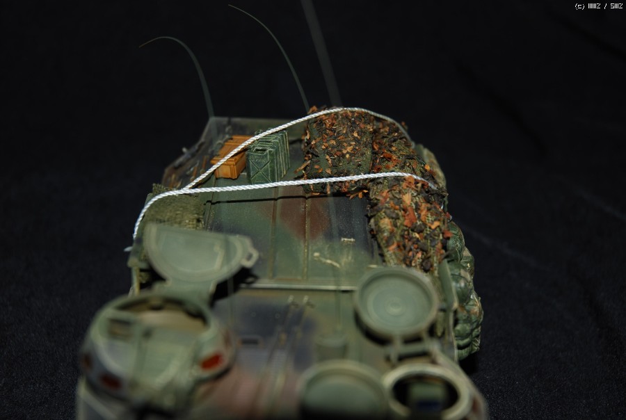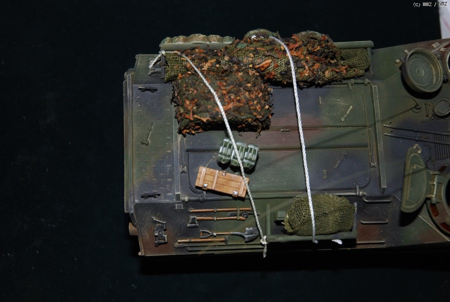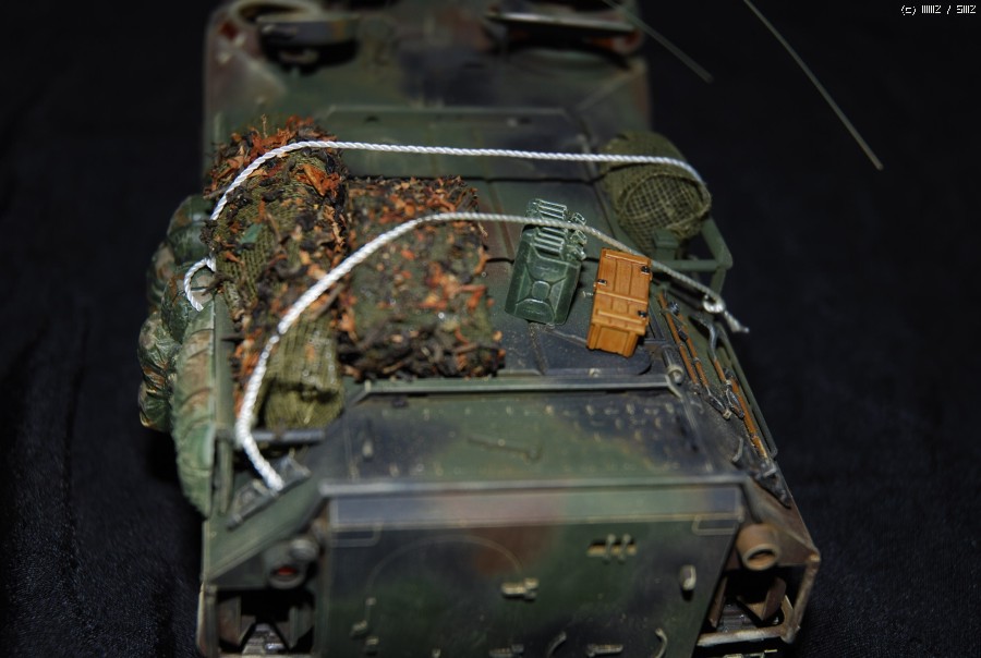 기본적으로 웨더링은 타미야 웨더링 마스터를 사용해서 표현하였고 남아있던 부족한 장비품과 위장망 작업. 안테나 작업해주었습니다.