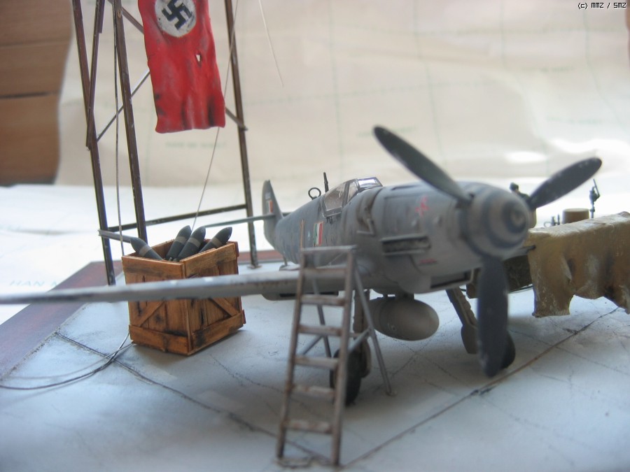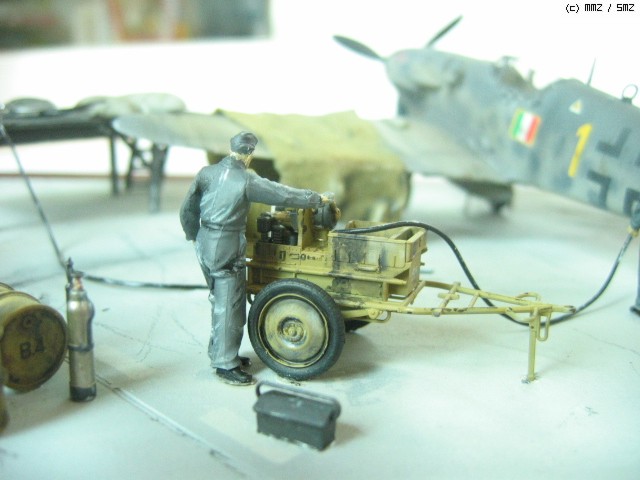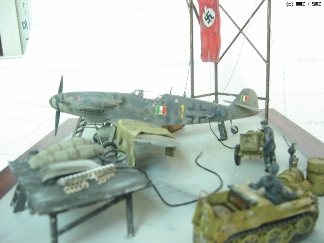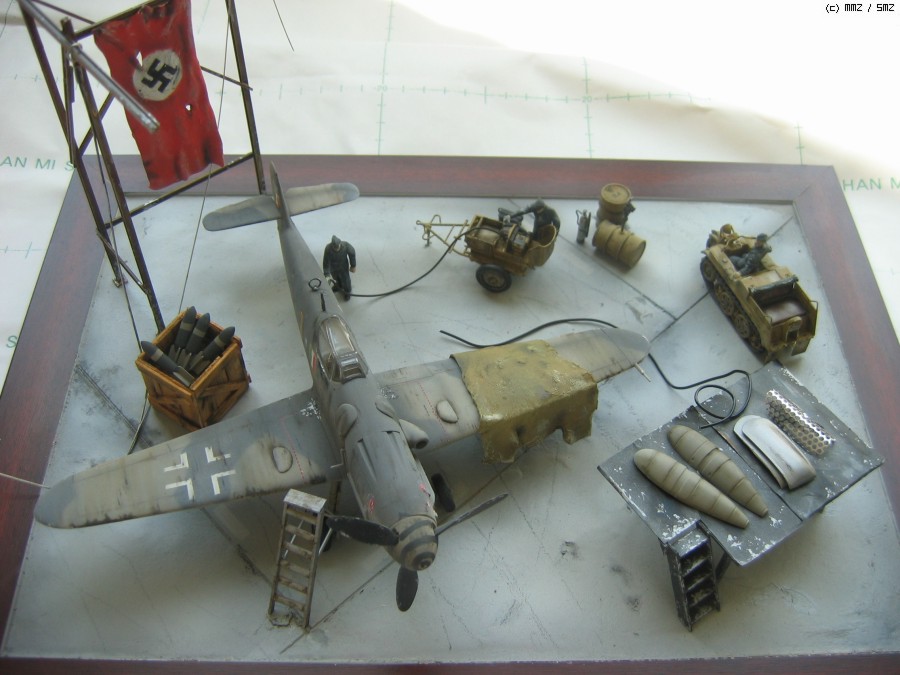 아름다운 비행을 위한 준비.. 큰 아이가 붙여준 제목입니다. 1/48 비행기-Messerschmitt Bf109-G14, 아카데미. Aircraft power supply unit & Kettenkraftrad, Tamiya. 비행기 뒤 작업 프레임과 깃발, 프레임 앞 폭탄저장박스, 비행기 우측 작업대 - 자작
