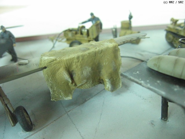 독일군 깃발은 에폭시퍼티로 자작. 색연필을 눕히고, 물을 많이 묻혀 퍼티를 얇게 편 후, 주름을 잡고, 약간 찢어진 효과를 낸 다음 건조.