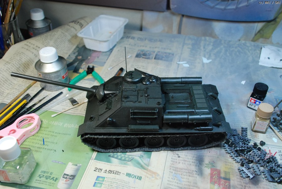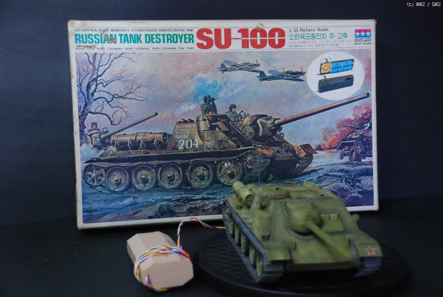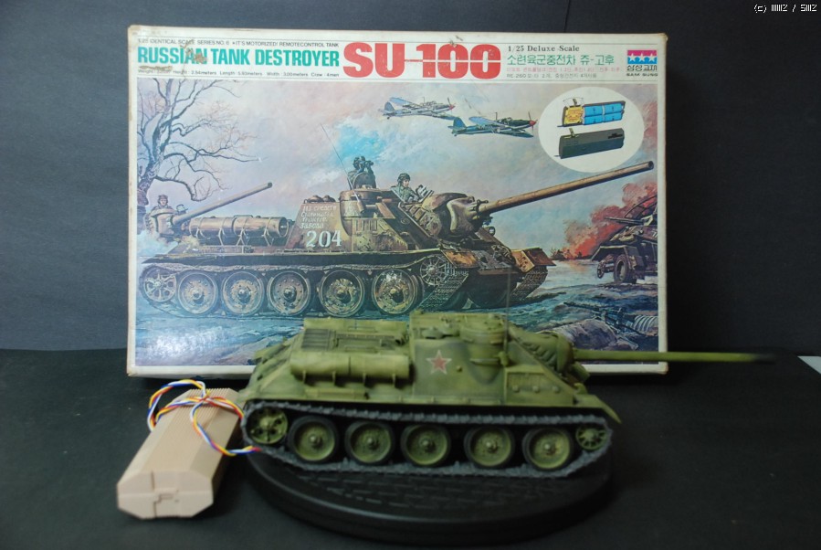오늘 소개할 완성 킷트는 81년에 출시되었던 삼성교재의 전신인 삼성기업에서 나온 SU-100입니다. 당시 상당히 고가의 킷트이면서, 흠잡을때 없었던 킷트로 생각이 됩니다. 당시 고무연질궤도로 나온 제품과는 달리 연결식 궤도 방식으로 나온 제품이라 더욱더 그 의의가 크다고 생각합니다. 설날 세배돈으로 사지 않고는 살수없는 가격이었죠.. 당시 초판은 6000원으로 나왔고 다음 재판은 7500원으로 출시되었습니다.그러다 90년대에 접어들면서 단종이 되었고, 다만 센츄리온 1/25스케일 모형으로 출시한 기억이 납니다(제 소견으로는)