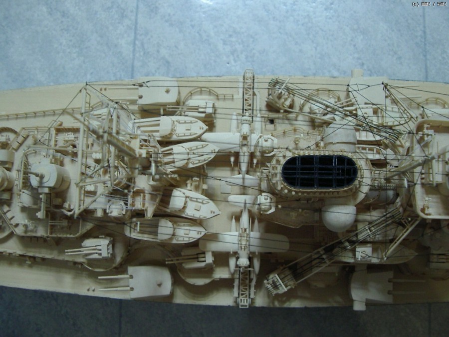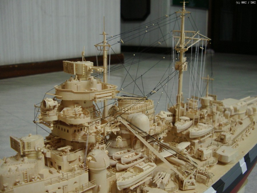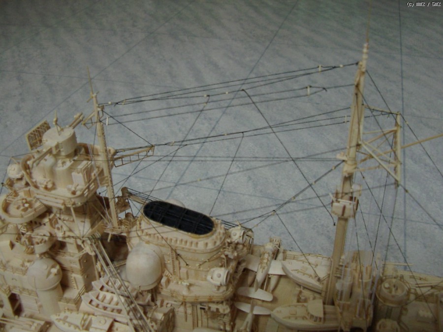 비스마르크의 리깅을 완료했습니다. 재료는 재봉용 실로 ...깃발은 종이에 직접 그려서 달고...