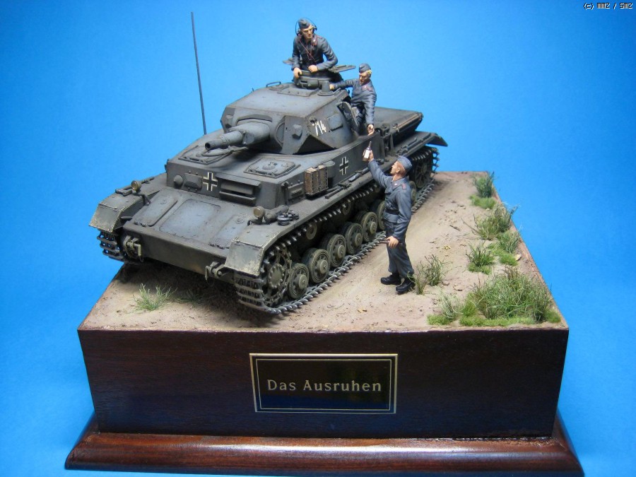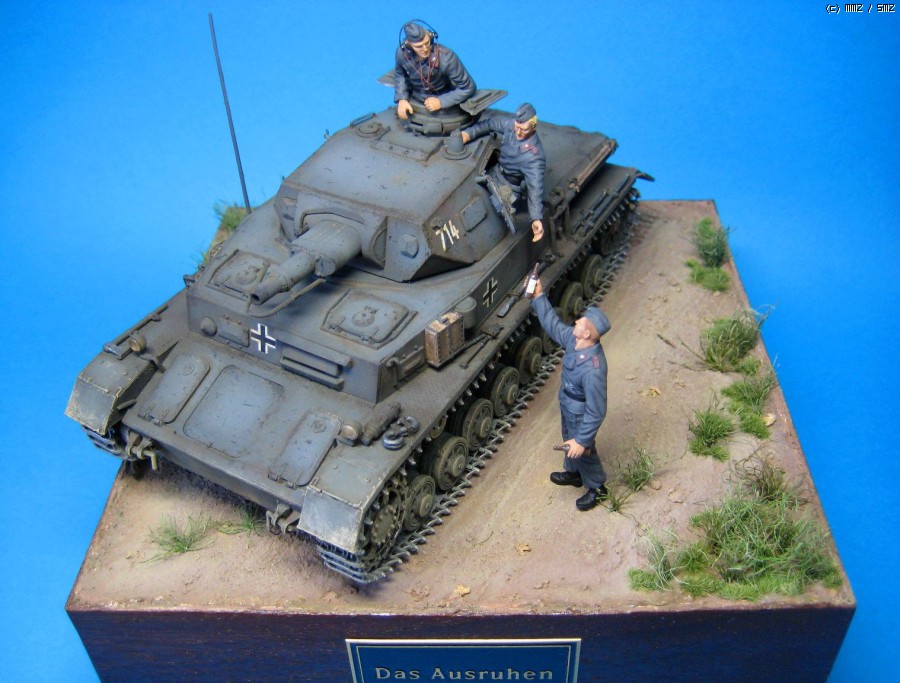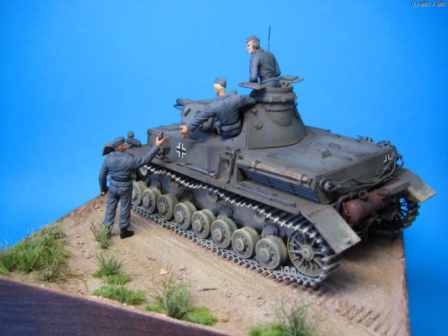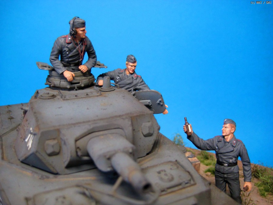 전차는 트라이스타 4호전차 Ausf.B 이구요 인형은 드레곤 전차병입니다. 도색은 전차, 인형 모두 험브롤이구요, 지면은 타미야 아크릴을 썼습니다. 풀은 일부는 옥수수수염, 일부는 철도모형용 잔디제품을 섞어 썼구요. 특별히 개조한건 없고 대머리에 가까워서 머리만 좀 만들었는데 어설프네요. 제 서재 스탠드가 백열전구라 색감도 막상 만들고 보니 계획한것과 다르지만 제 수준에 비한다면 만족합니다.