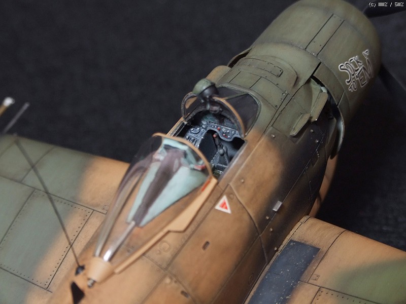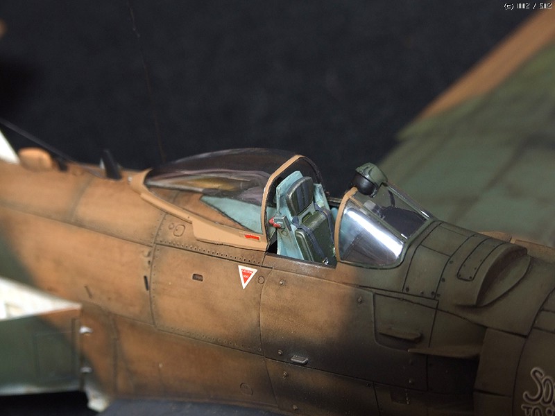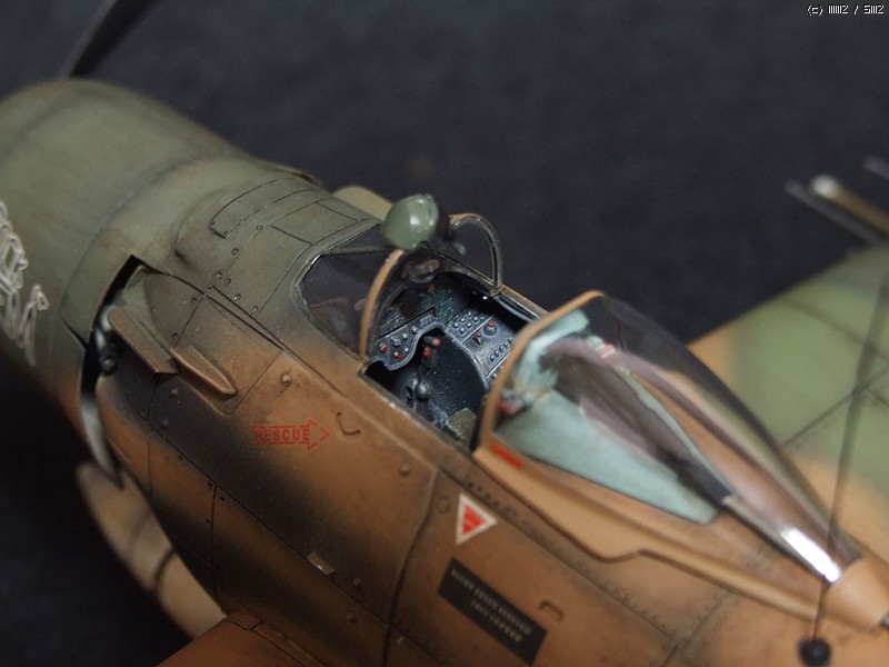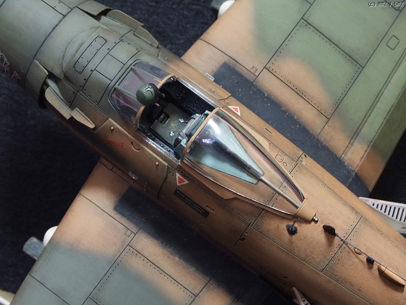 다만 리벳 표현이 그리 많이 되어있지않기때문에 제 임의대로 리벳팅을 해주었습니다. 아예 없는 것보다 보기에 좋을 정도로 찍어주었습니다. 패널 라인을 좀 더 파주었구요. 또한 사출좌석에 씨트벨트 표현이 안되어있습니다. 사실은 조종사를 얹어주면 되는 데, 비넷을 염두에 두고 조종사를 빼다보니 씨트벨트의 표현을 에칭조각을 가지고 표현해 주었습니다. 그리고 안테나 선 등이 생략되어 있었기때문에 이에 대한 표현을 해주었습니다. 기관포의 총신에 구멍을 내 주었습니다. 마지막으로 엔진부에 황동선으로 배선 작업을 하여 디테일업 작업을 해주었습니다.