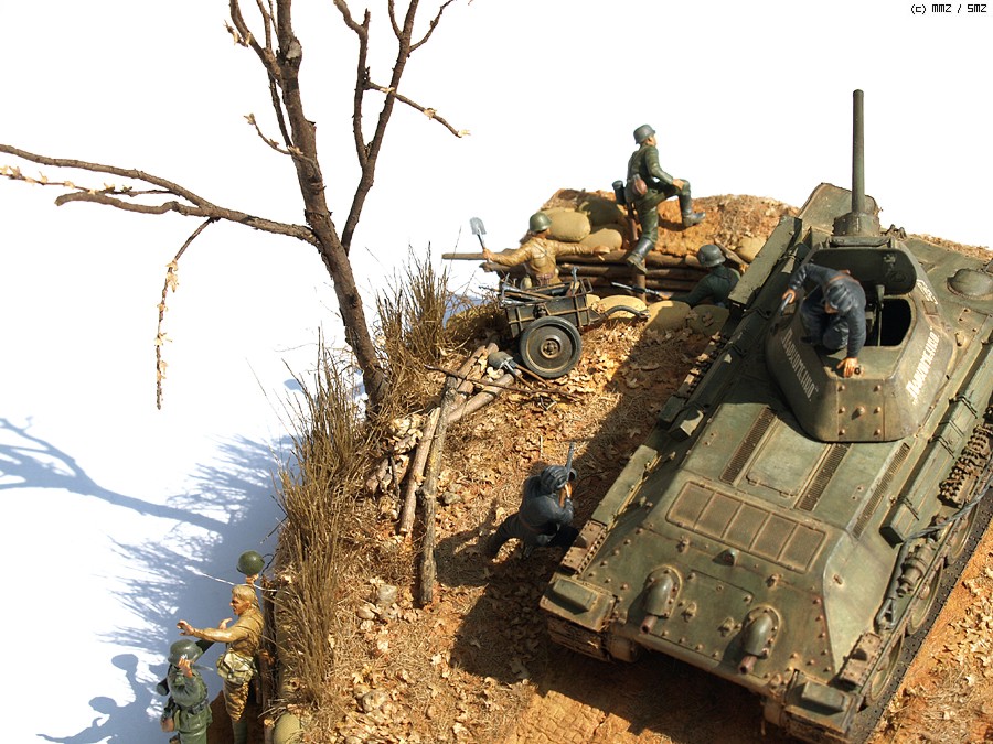 고증을 잘몰라서 처음에는 셔먼이랑 미국인형을올려놨는데..영~~아니라고해서 기냥 접을려했어요..아시는분이 T-34를 올려보라고하셔서..언제하나했는데~~~~