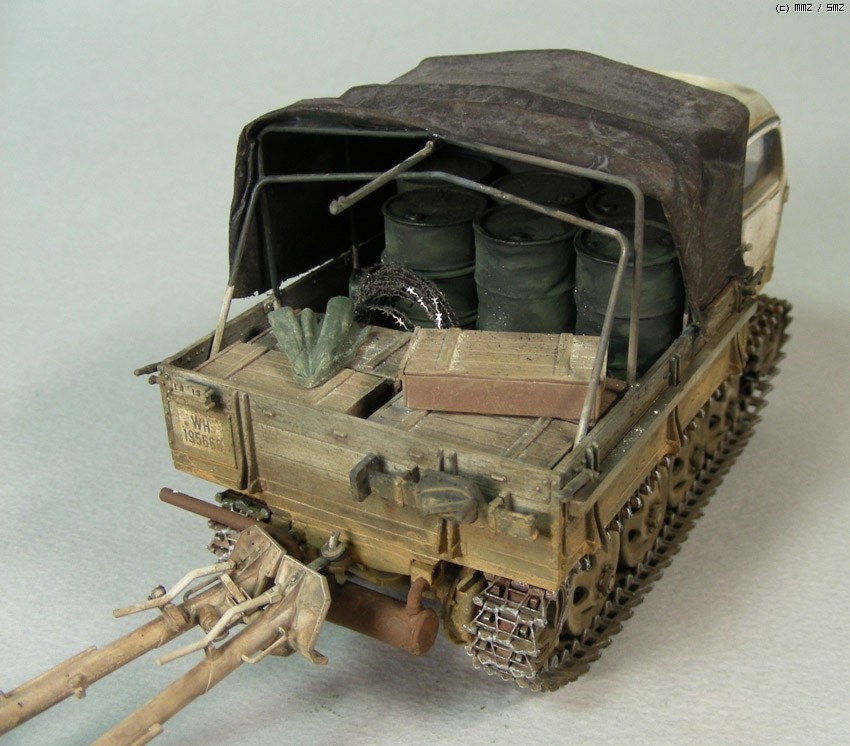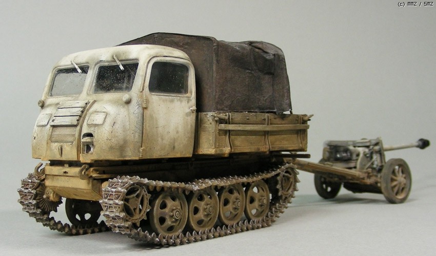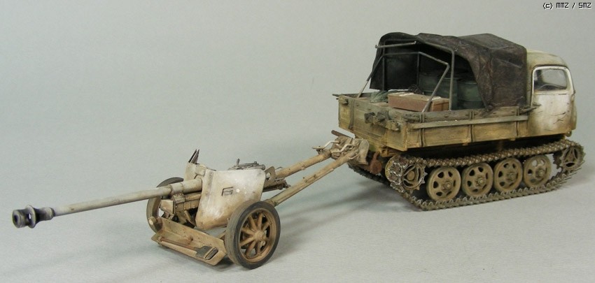 사진과 같이 견인시에는 삽이 달린 부분이 위로 꺾이고 포신은 최고 각도로 세워야 합니다.