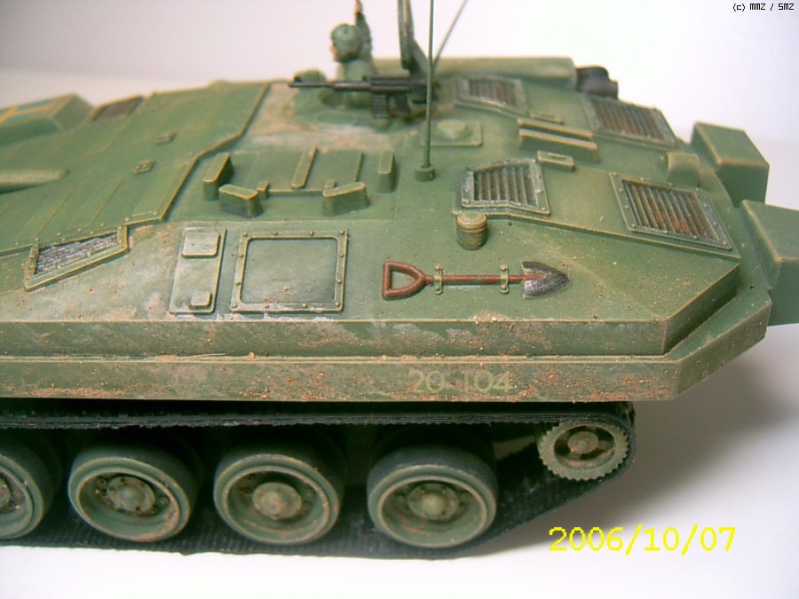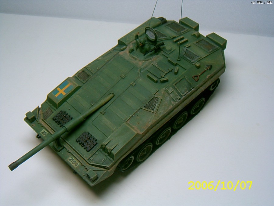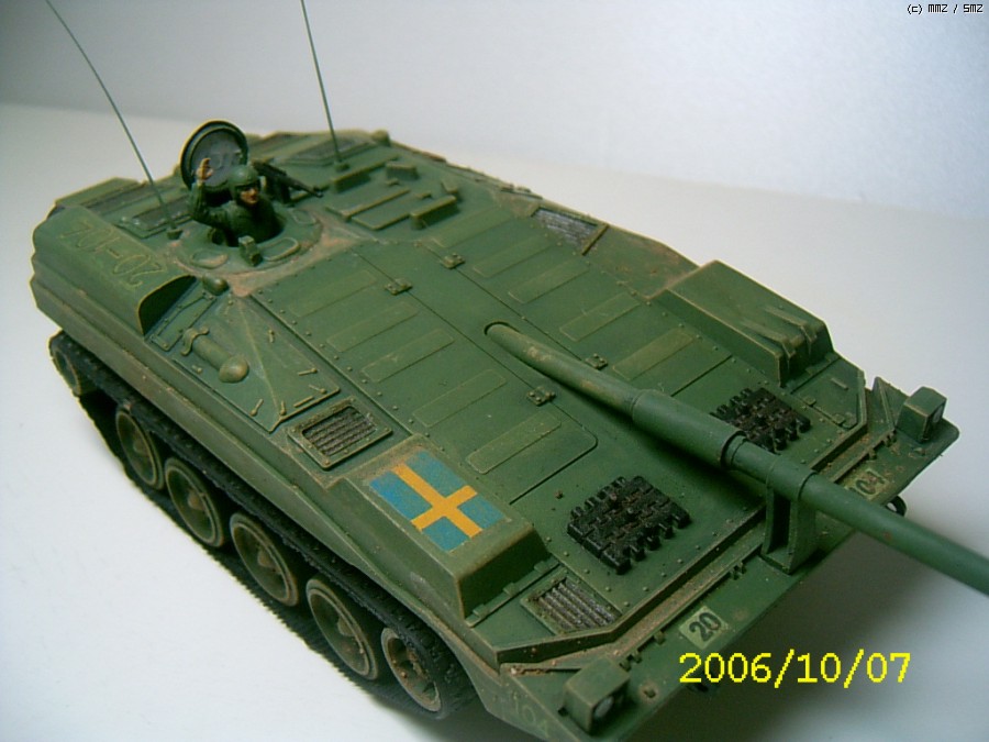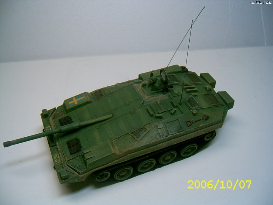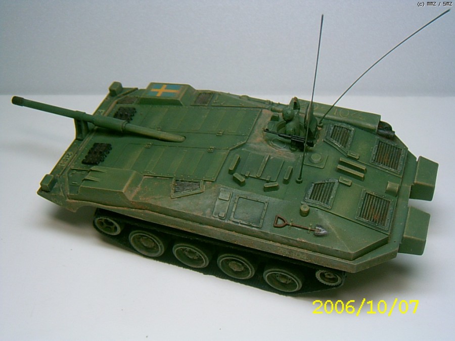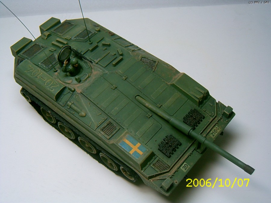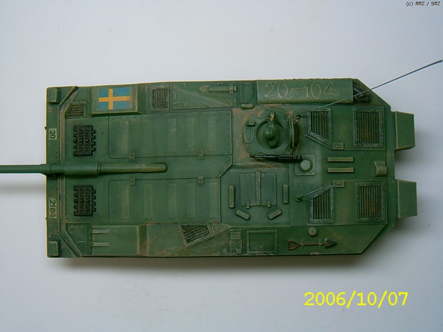 제작은 2006년에 하였습니다. 나름 솜씨가 형편없을때 한거라 완성도가 많이 떨어진 킷트입니다.특징은 소형건전지2개가 하체바디에 내장이 되어 스위치 방식으로 작동됩니다. 따라서 전후진만 작동이 되어 약간은 재미가 없었죠. 시리즈로 G탱크,타이거,롬멜등 기타 제품들도 출시가