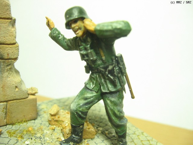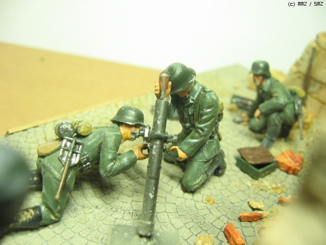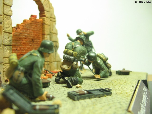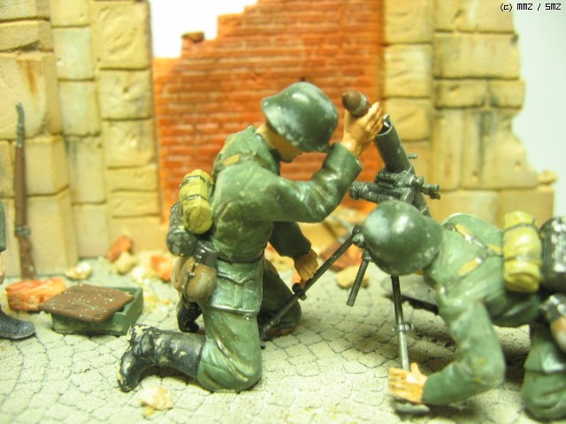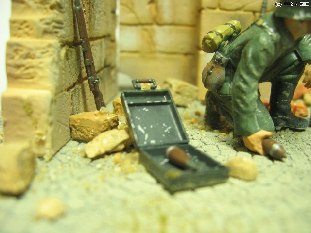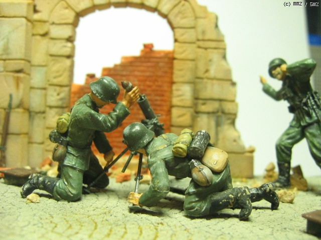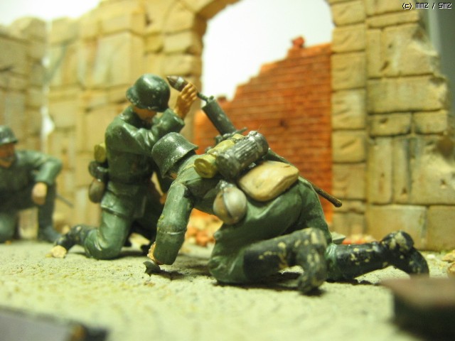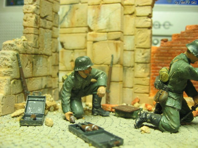 독일군 박격포 보병- 1/35. 타미야것을 그대로 썼습니다. 벽면을 질감을 살리기 위해 석고로 복제를 만들었습니다. 역시 석고가 원형에 가까운 질감 표현에 제격인 것 같습니다...