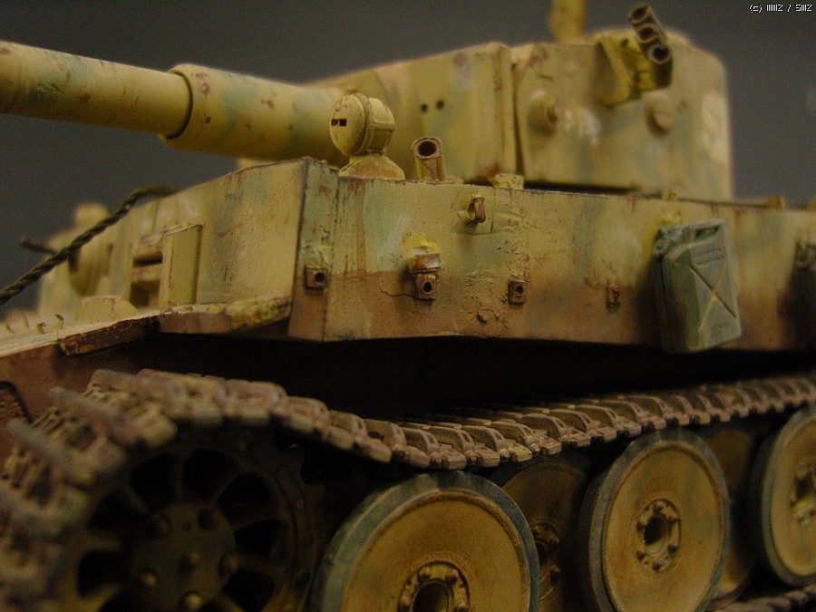 이번엔 클리어를 /조금 두텁게 올리고, 그 위에 녹 색깔로 드라이 브러싱 하는 식으로 낡고 거친 전차의 측면의 금속감을 표현해 보려 시도했습니다.