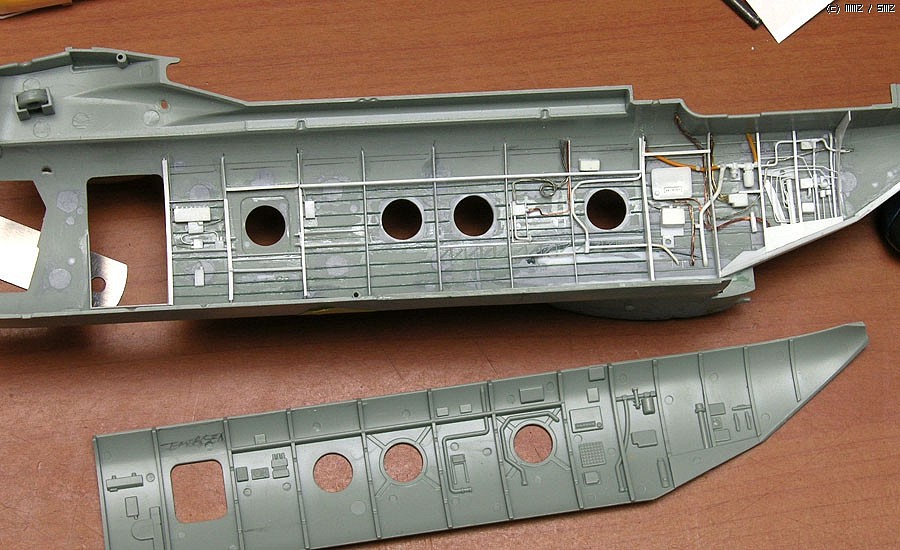 격벽도 통신장비쪽 배선처리와 실내장착 윈치쪽 부품을 사진을 바탕으로 만들어 주었습니다. 실기는 엄청 복잡하지만 저는 만들수있는데 까지만 표현해 주었습니다.