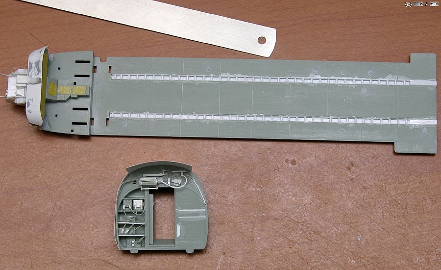 아래는 킷에 들어있는 원래부품입니다. 처음에는 그냥 디테일만 좀더 살려서 쓸려고 했으나 저 부품을 그냥 쓸경우 외벽이 너무 두꺼워지고 실내가 좁아지는 치명적인 문제로 어쩔수없이 자작했습니다. 처음부터 없는 부품이다 생각으로 마음을 비우고 만드니 그냥그냥 만들만 했습니다.