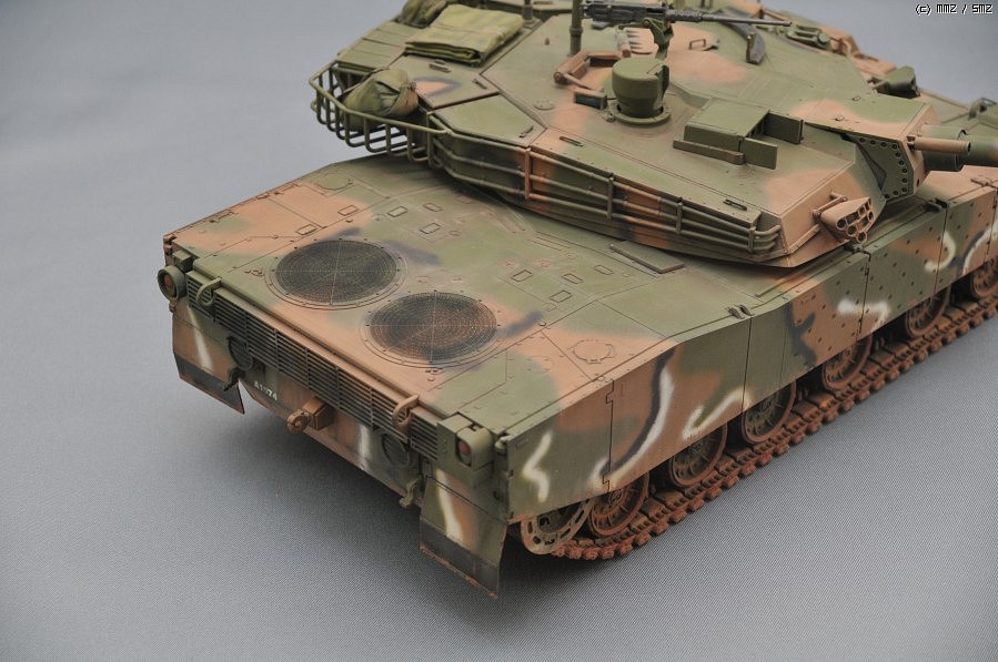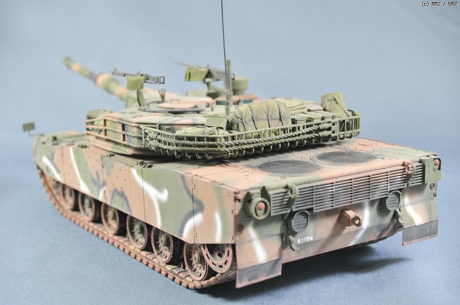 오랜만에 완성한 녀석이고 MMZONE에 복귀하는 작품입니다. 아카데미의 1/35 K1A1일반판입니다. 설명서 그대로 제작하고 도색을 했습니다. 장비품은 네이버하비에서 나온 장비품을 이용했습니다. 검은색으로 밑칠을 하고 설명서에 지정된 GSI의 락카도료를 이용해서 도색을 했습니다. 웨더링은 무광클리어를 한벌 입히고 전체적으로 검은색 에나멜을 희석해서 워씽을 하고 역시 GSI의 웨더링 파스텔을 이용해서 가볍게 먼지가 올려진 표현을 해보았습니다.