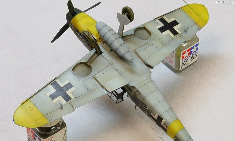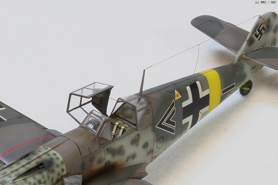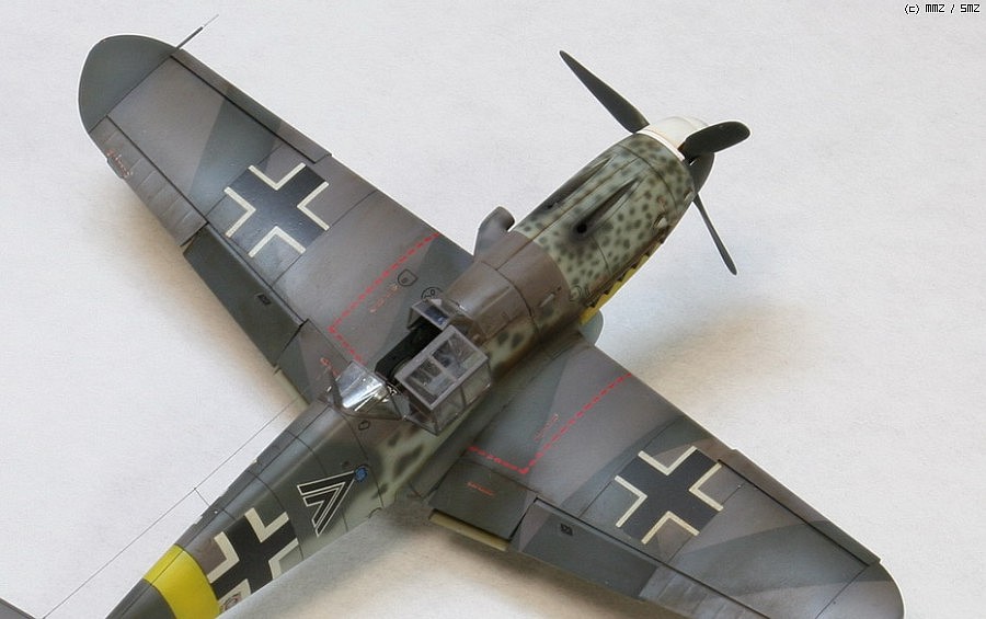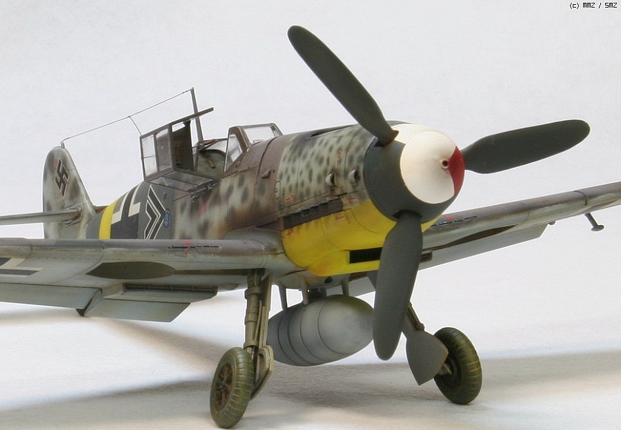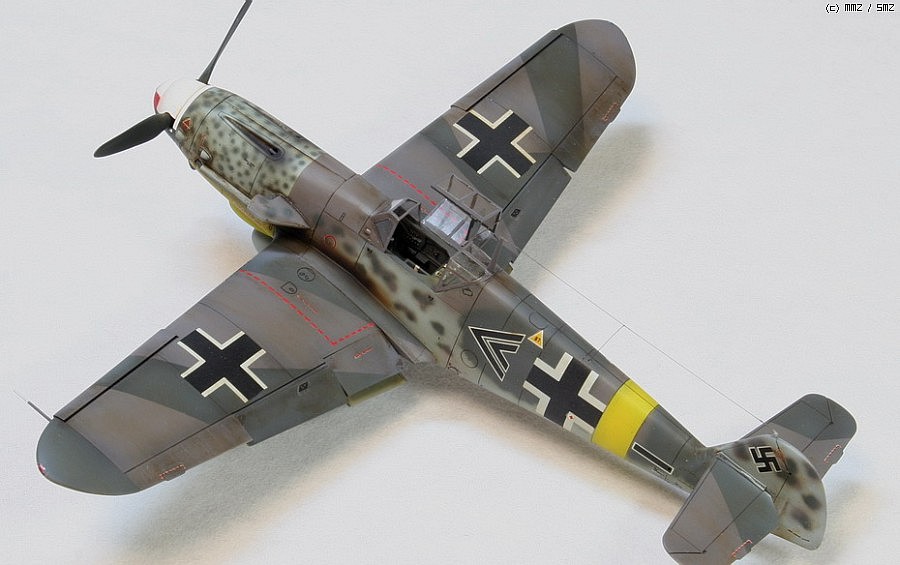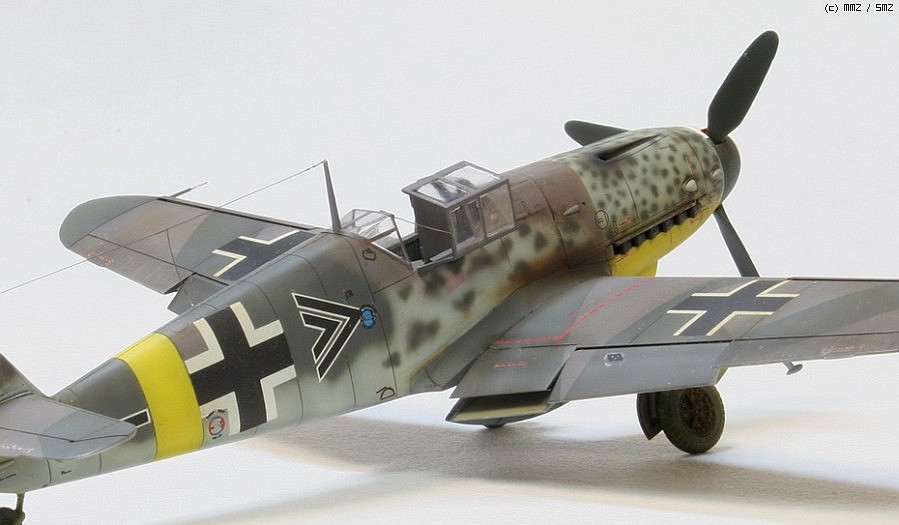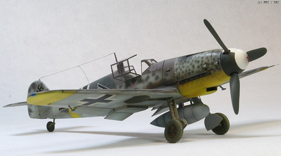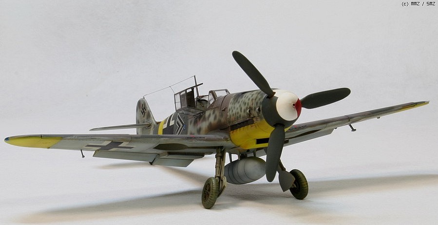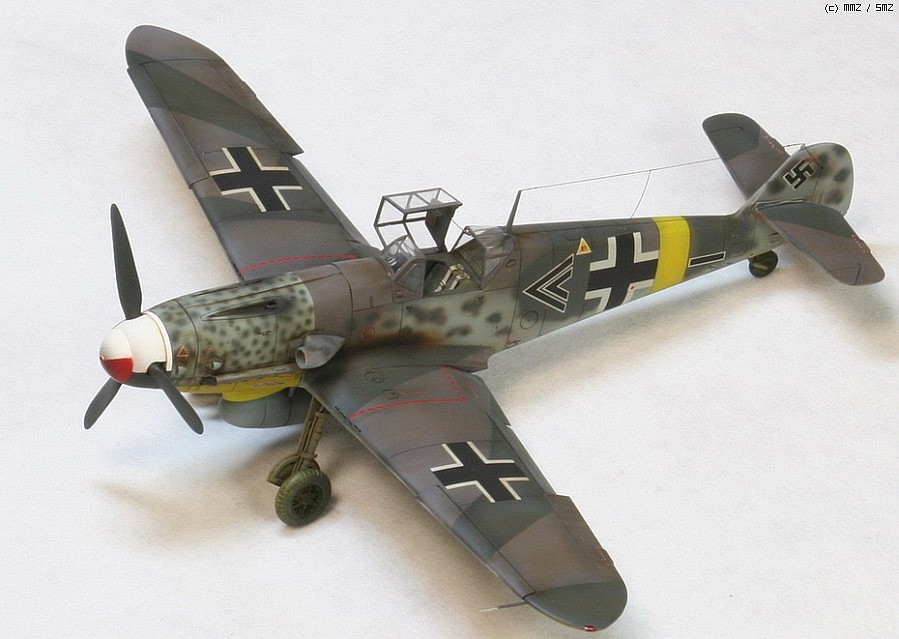 오래간만에 랜딩기어를 붙인 비행기를 만들어 보았읍니다. 하세가와 1/48 Bf109G-2인데, 오래된 키트라 그런지 데칼의 핀트가 잘 안맞았읍니다. 스텝라인을 스텐실 한 것 이외에는, 그래도 그냥 붙여 보았읍니다.
