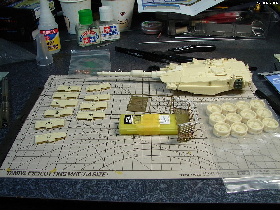 레전드 킷을 만드는 중입니다.예전에 코레에서 발매된 디테일 업 셋트를 만들다 체인부분제작에서 한번 실패를 해서(길이가 들죽날죽)오기가 생겨서 다시 도번해봤습니다..근데 문제는 baz나 루프아머 버전이 아닌 어정쩡한 버전인지라 자료가 없네요..해서 스커트(아카제 오리지널과 볼트간격이 다름)강철제로드휠은 네맘대로 추가했습니다...