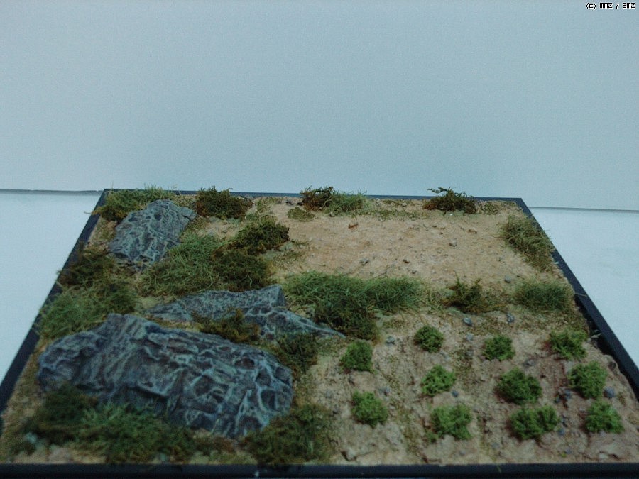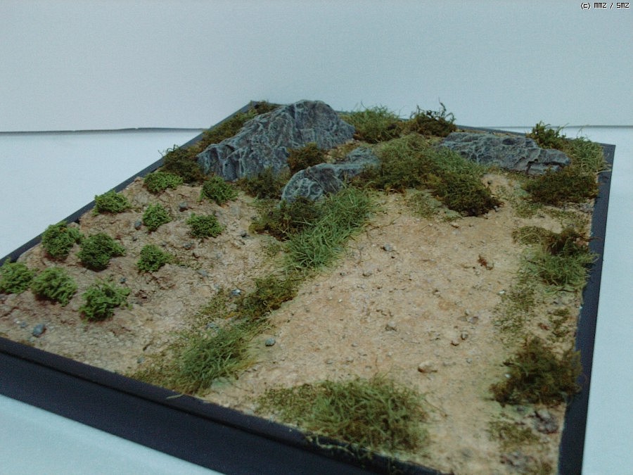석고가루와 모래를 섞어 덧바른 뒤 타미야 아크릴 어스로 칠하였습니다.