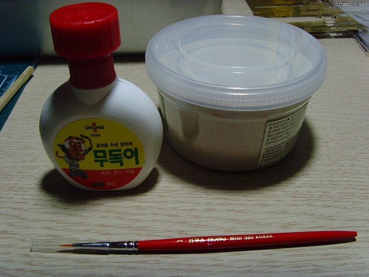 준비물은 고운 모래, 세필, 목공용 접착제 입니다.