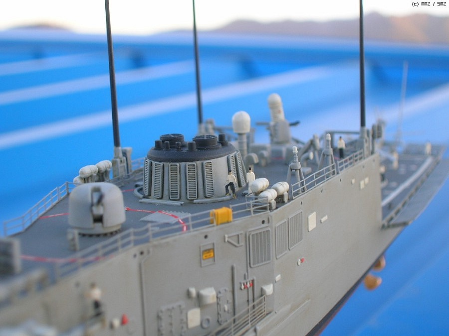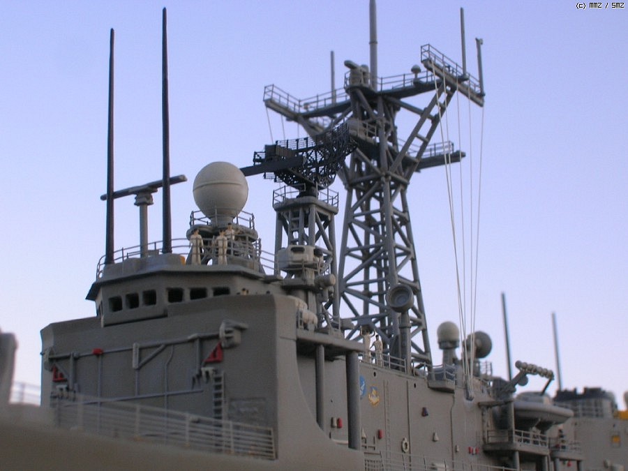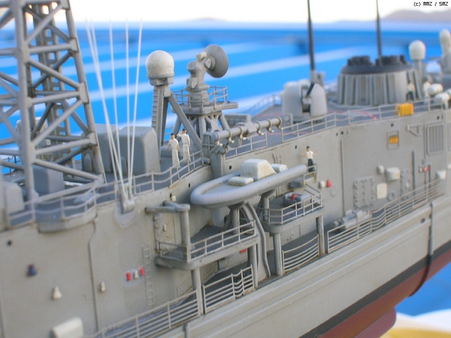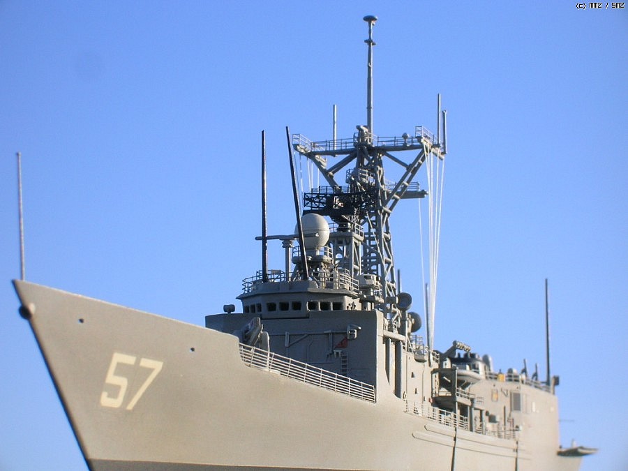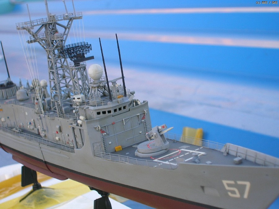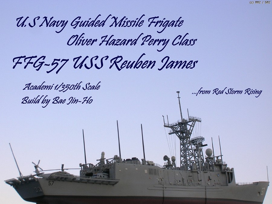 키트는 아카데미에서 발매된 올리버 해저드 페리급(FFG-7)을 약간 손봐서(파트가 키트에 들어 있습니다) 롱헐 타입의 후기형 루벤 제임스(FFG-57)로 만든 것인데 아무래도 난생 처음 만들어보는 미 현용함이라 이래 저래 미숙한 점이 많네요...^^; 아무래도 전 역시 대전함 체질인가 봅니다.ㅋ