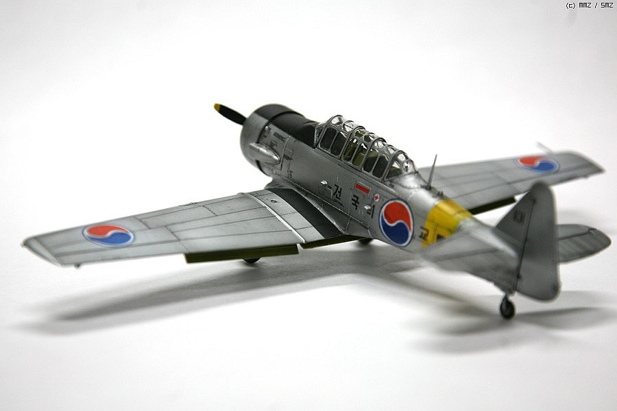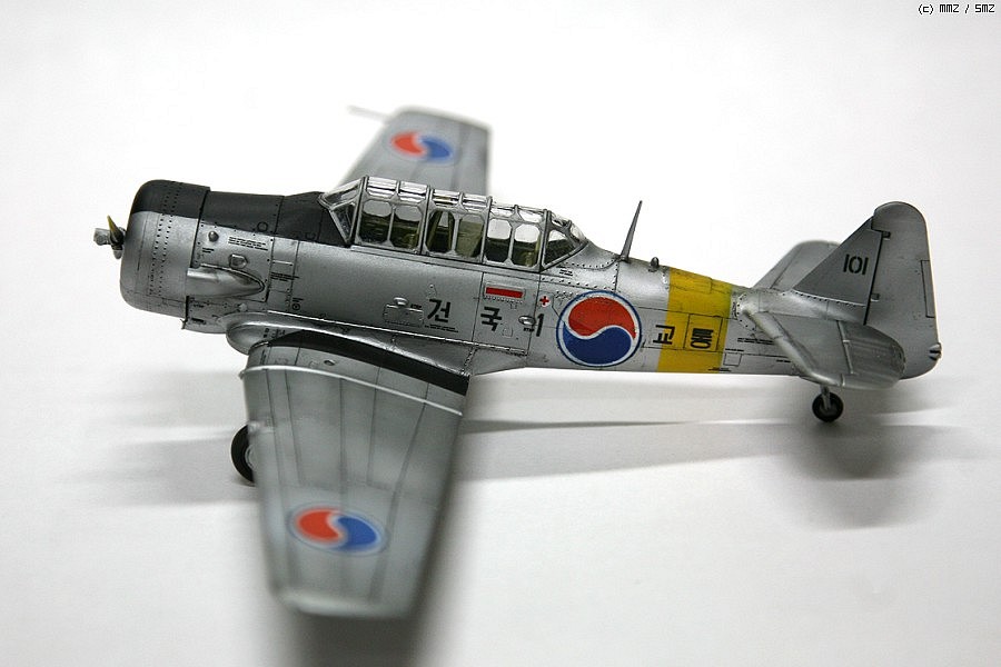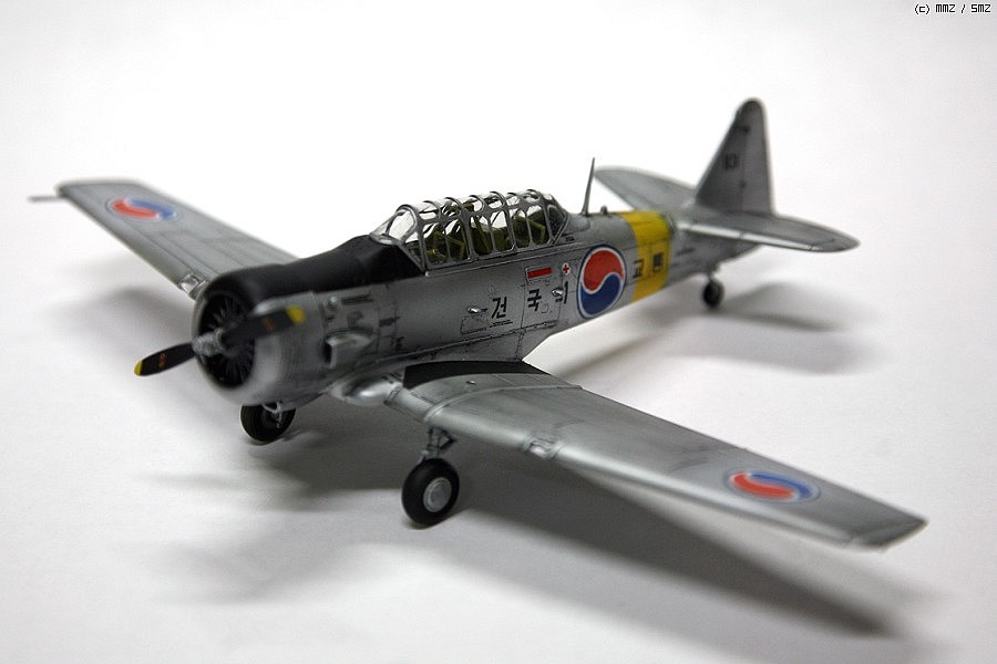 한국곤군 최초의 도입기 건국기입니다,,이승만대통령이 명명한 건국기로 당시 도입하는데 많은 어려움이 있었고 미국에서의 도입이 어려워 캐나다에서 도입하였습니다...물론 전투기가 아닌 훈련기로 도입되었습니다...총10대의 기체가 도입되었습니다...이타레리 택산을 사용하였습니다..물론 이탈제 키트를 그대로 사용은 어렵고 부분 개수를 해야합니다...즉, 이탈제는 후기형으로 콕핏의 형태와 머플러가 다릅니다...초기형으로 개수해야합니다.