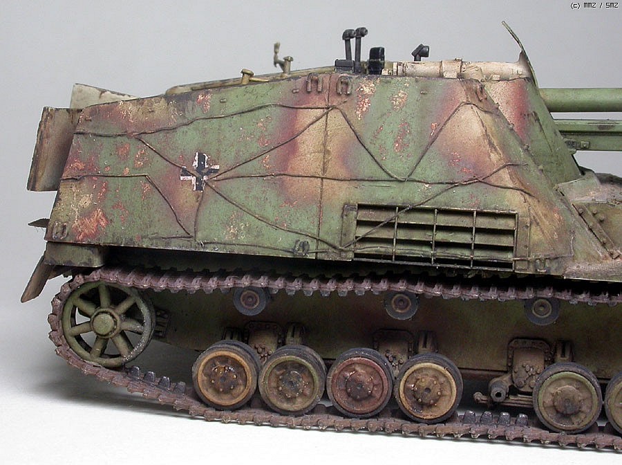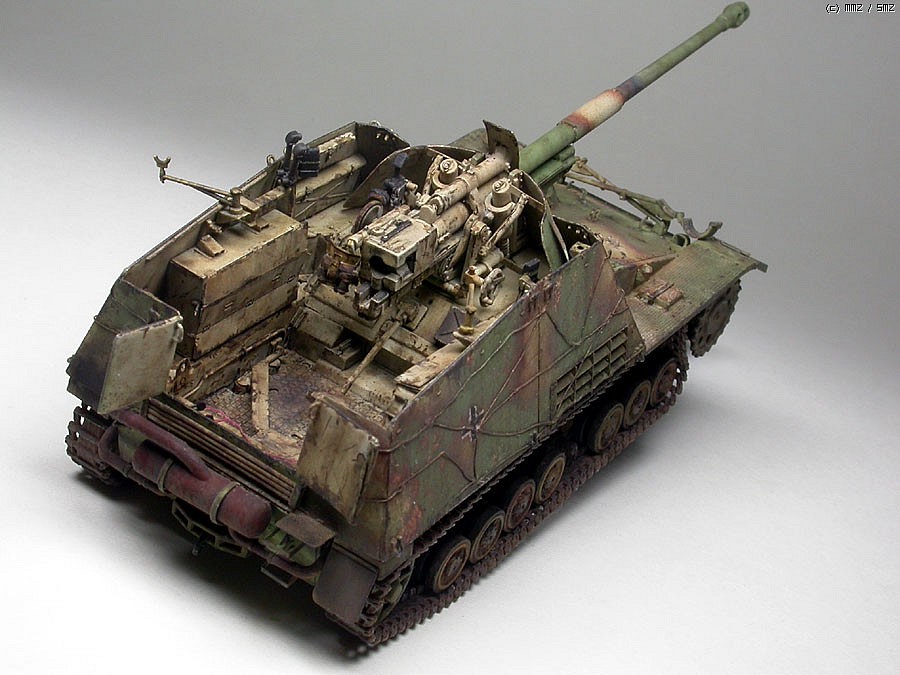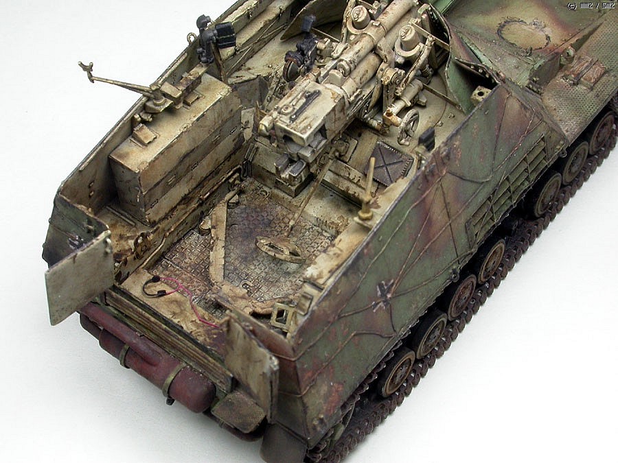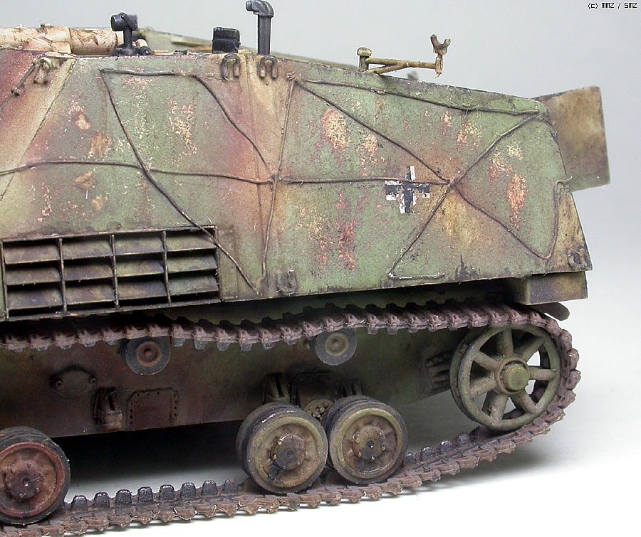 Model Fibel 자주포 편에 나온 나스호른을 참고하여 위장용 와이어를 얼기설기 엮어주었습니다.