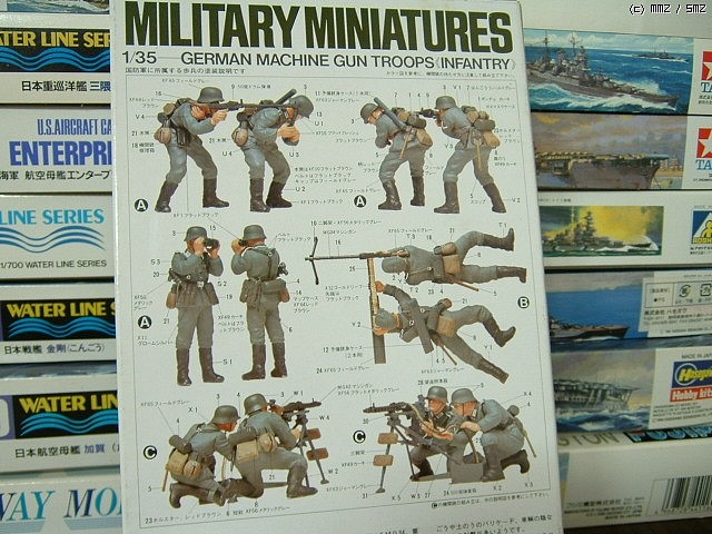 별도의 기관총조립에관한 설명서가 있지만, 보통 타미야 구판 보병킷은 박스뒷면에 설명서와 함께 도장가이드 그리고 킷에대한 간단한 설명이 들어가있습니다...
