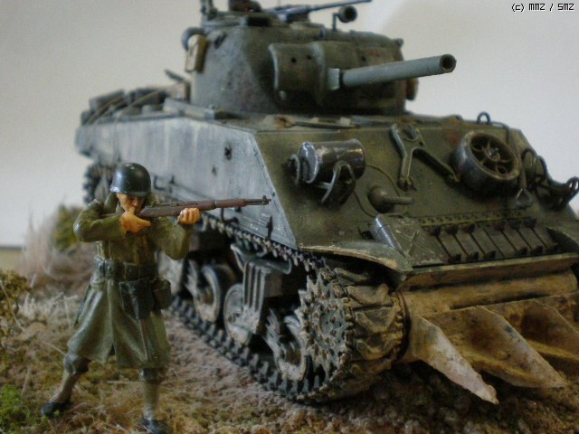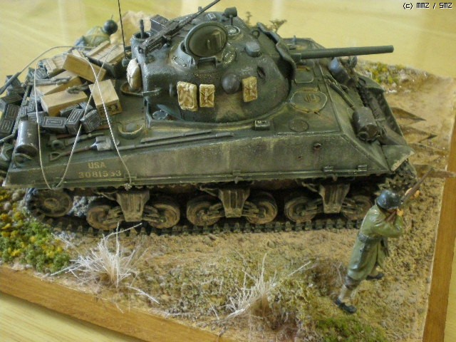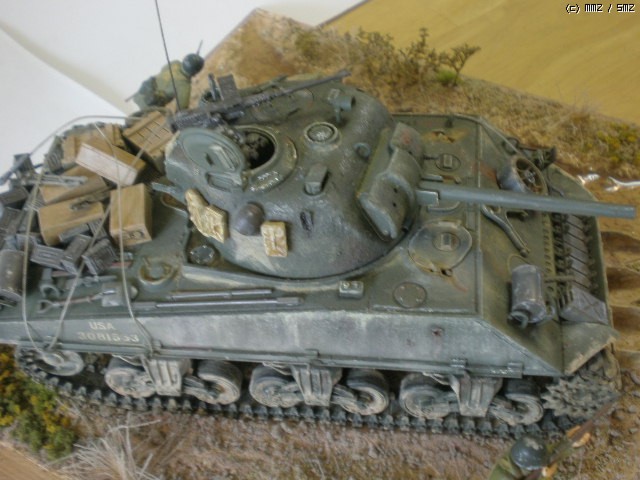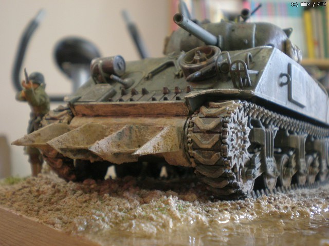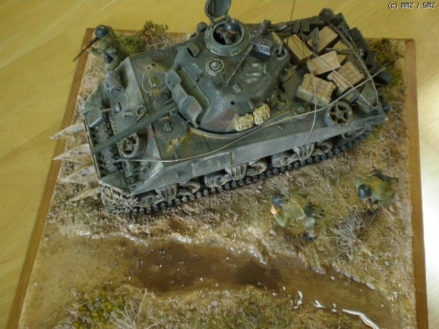 타미야 M4A3 sherman 키트를 그대로 제작했습니다. 베이스를 만들고 약간의 배경처리를 해 보았습니다.. 처음 만들어 보는 셔먼인데, 통통한 모습이 나름 흥미를 당기게 합니다. 키트에 들어있는 기본 악세서리도 풍부한 편인 것 같습니다.