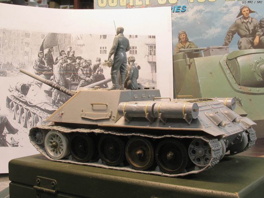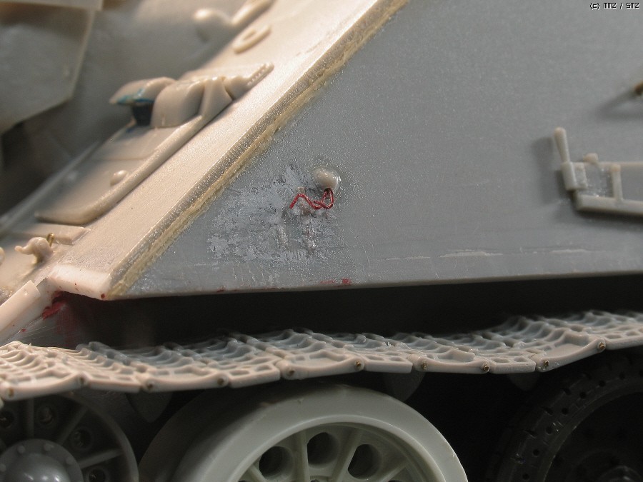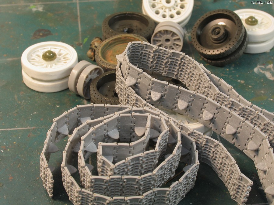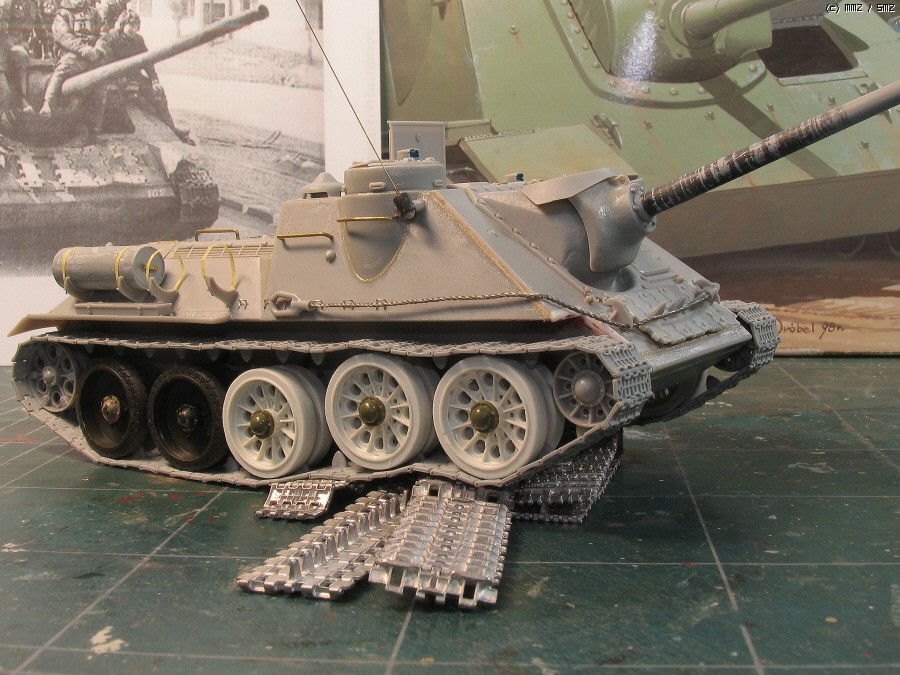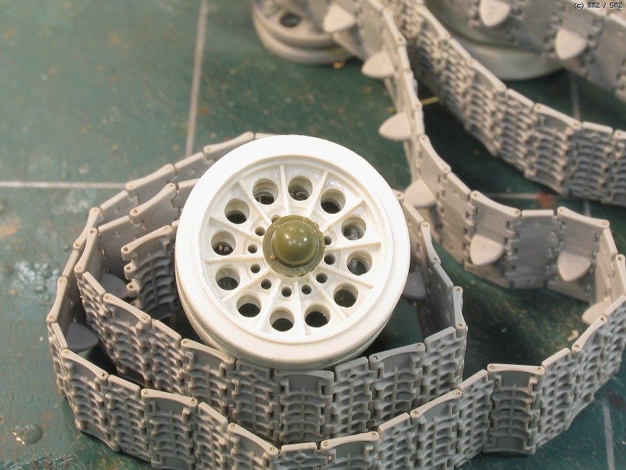 원 키트의 전륜은 다른 T-34/85에 쓰려 빼었고, 타미야와 마퀘트 전륜으로 대체.