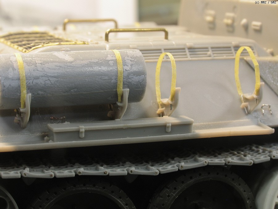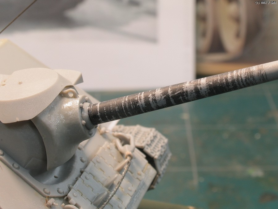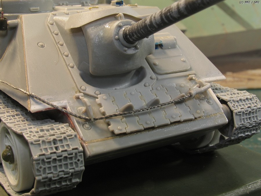 SU-100박스에는 100mm 포만 들어있어서 동사의 판터에 있는 여유 포신으로 대체,동호회 회원의 SU-85M키트의 포신과 비교 길이 두께 수정.