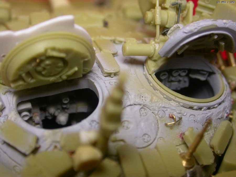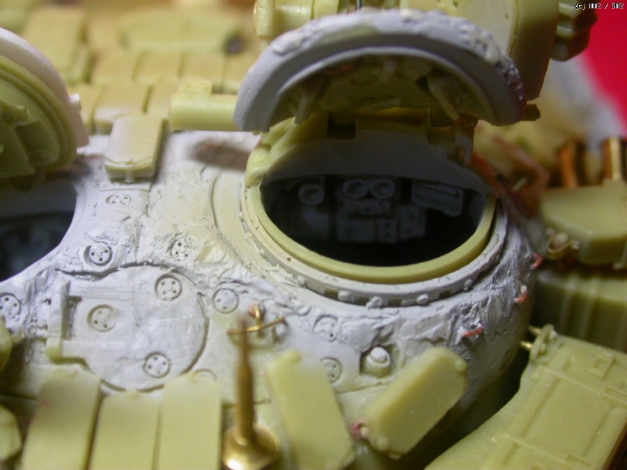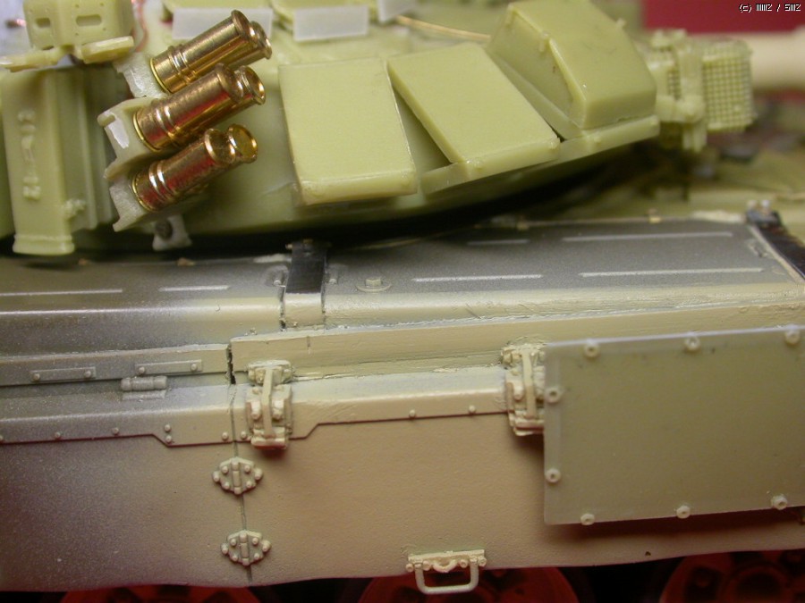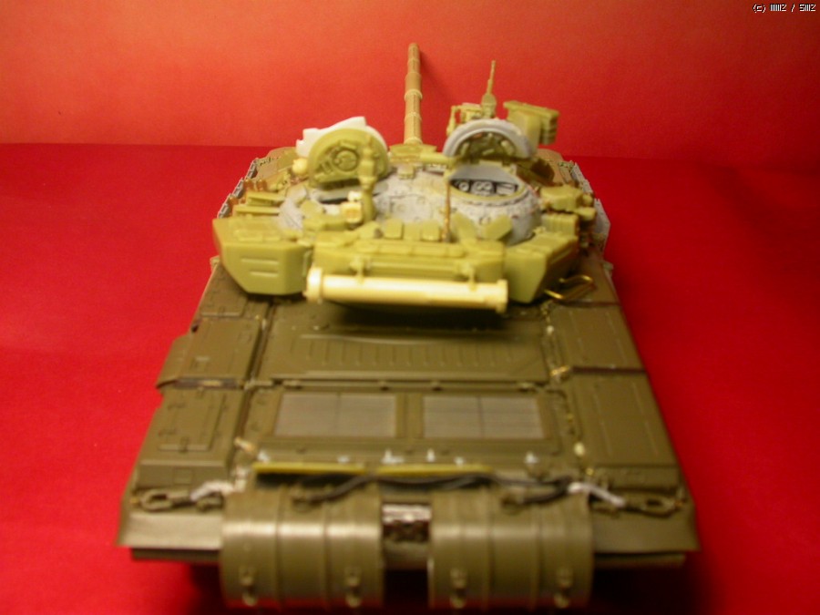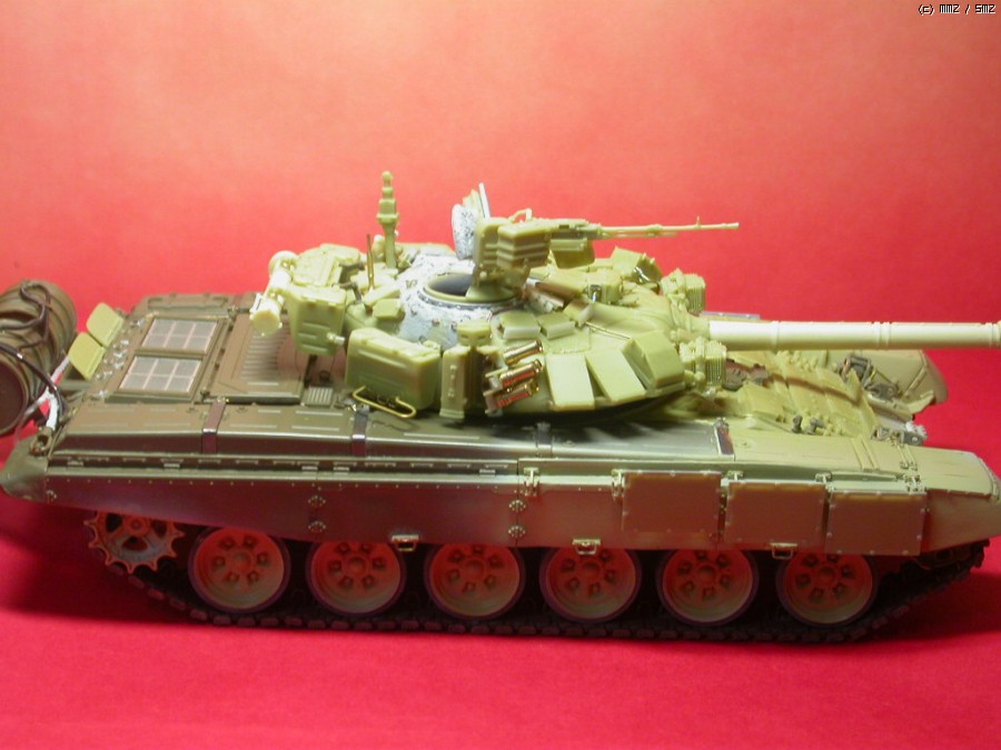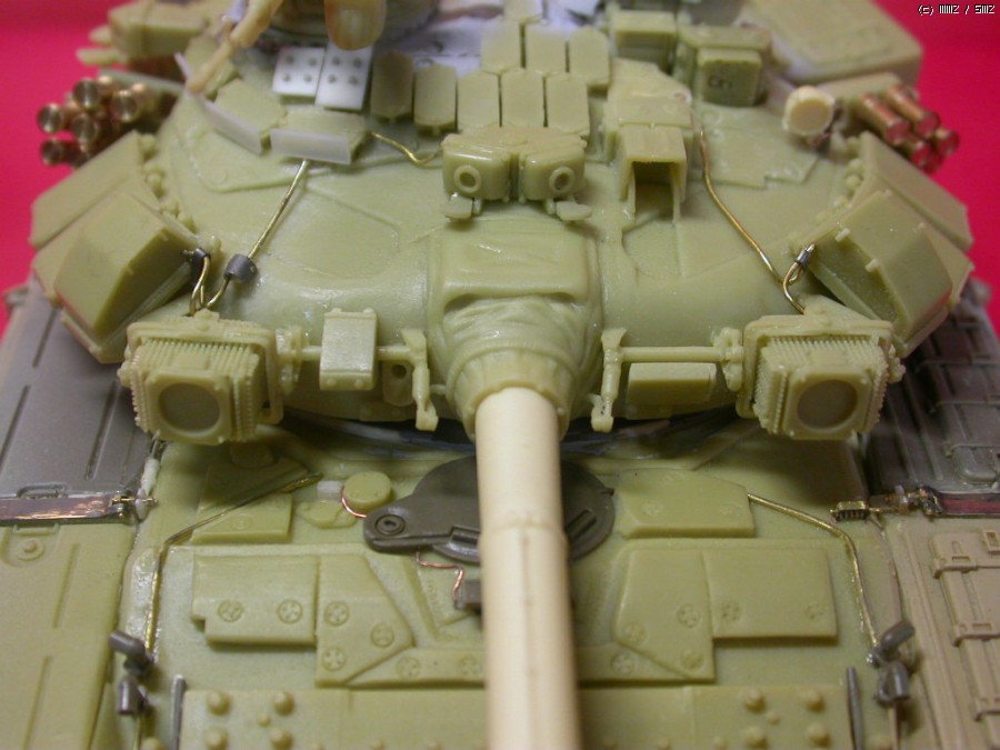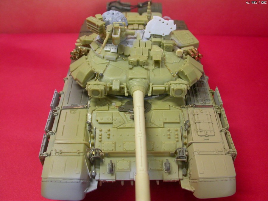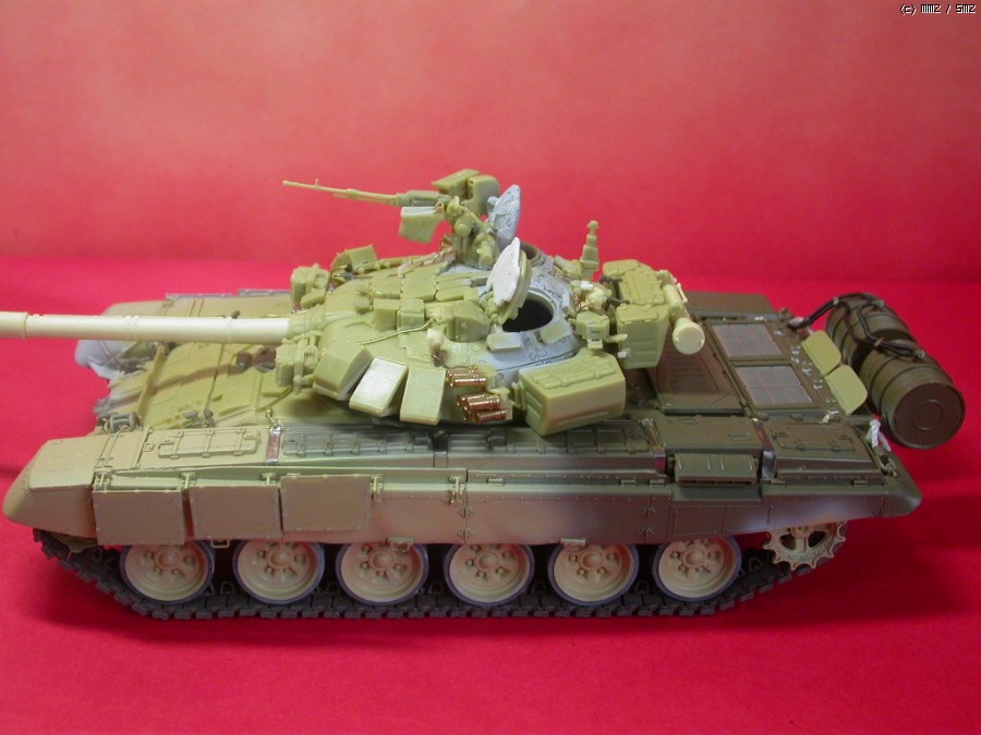 목표가 T-90 Tank 90%대급 재현조립이라 ... 타미야 T-72M1키트가 베이스+Miniarm제 별매품 full set+블라스트 T-72 디테일세트부품몇개와 잡다메이커의 별매품약간+자작디테일 추가의 작업을 해 주었읍니다..T-90을 잘 재현하기위해서는 필연적으로 T-72도 잘 재현해 주어야 하므로 ..작업은 결국 타미야 T-72키트 디테일업 작업과 Miniarm 별매품 이용시 생략된 부분에 대한 디테일업 작업이 주가 되었읍니다..제작례가 몇개 안되지만 어쨌든 저의 것이 후발이니 선작례품 보다는 좀 더 꾸며 보았읍니다