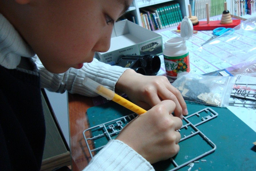 조카는 처음 경험하는 모형이기 때문에 작업 하나하나 흥미를 가지고 해주어서 다행이었습니다. 말도 잘들어서 안전하게 끝낼수 있었고...한가지 느낀점이라면....나도 저당시 러랬을까...^^...워낙 축구를 좋아하는 아이여서 TV에서 축구이야기만 나오면 모형 하다가도 정신을 팔아서 좀 주위가 산만해지는...ㅋ...그래서 집중력도 키울겸 이걸 한건데 ㅎㅎ...아무튼 사진 나갑니다.