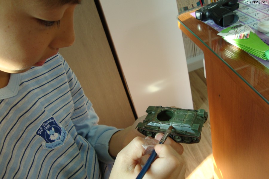 조카가 포탑 글씨도 삐뚤어지게 쓰는데 입문자에게 너무 무리(?)를 했나 싶어서..원래는 chipping도 한번 시켜볼려고 했는데 안되겠다 싶어서 그것도 제가 해주었습니다. 유화물감을 안가져와서 대충 조색한 정체불명의 색으로 기름떼도 같이 해주고...