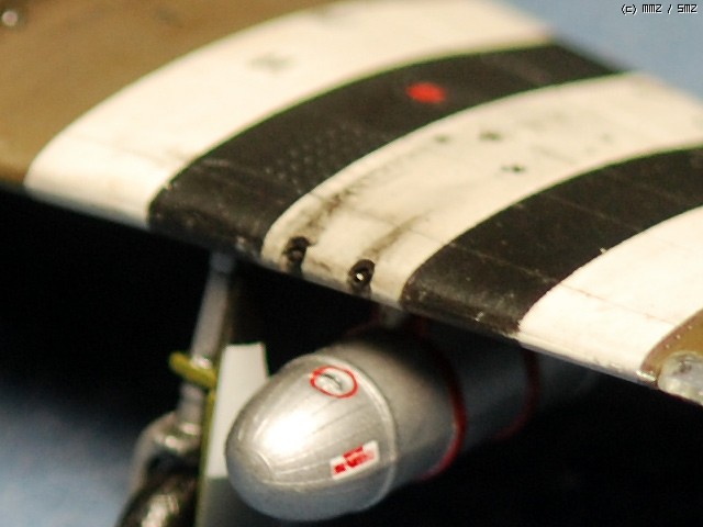 데칼을 안 쓰고 마스킹으로만 스트라이프를 표현하긴 했지만, 미리 데칼 붙일 자리에 흰색을 올리고 시작했어야 하는데 그것을 안 한 것이 그만... 결국 흰줄 검은줄에 따라서 데칼색에 차이가 나게 되어 부랴부랴 흰 에나멜로 메꿔주었습니다.