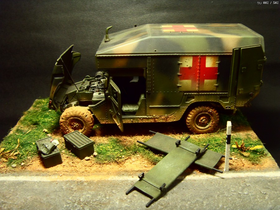 이놈두 아주 오래전에 만든 아카데미 험비 앰브란스입니다 아마 독일 나토훈련중이란 설정?...ㅜㅜ 국내 어디 메이커에서 나온 엔진 별매품을 사용해서 만들었습니다...