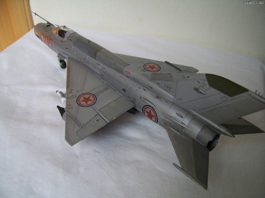 뱅기만 프로덕션의 북한군 마킹을 사용했습니다. 북한군의 Mig-21은 PF형과 MF형의 중간 과도기라고 하던데, 저는 그냥 MF형으로 만들었습니다. (아카데미에서 두 키트의 런너를 적당히 섞어서 북한군 특별판으로 내놓으면 참 좋을텐데요.)