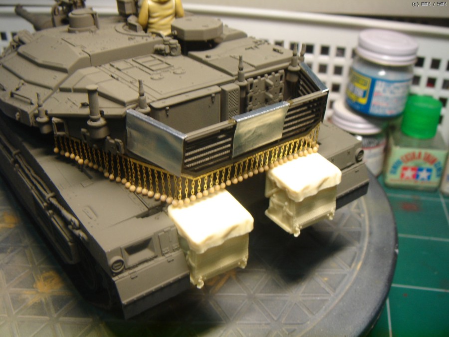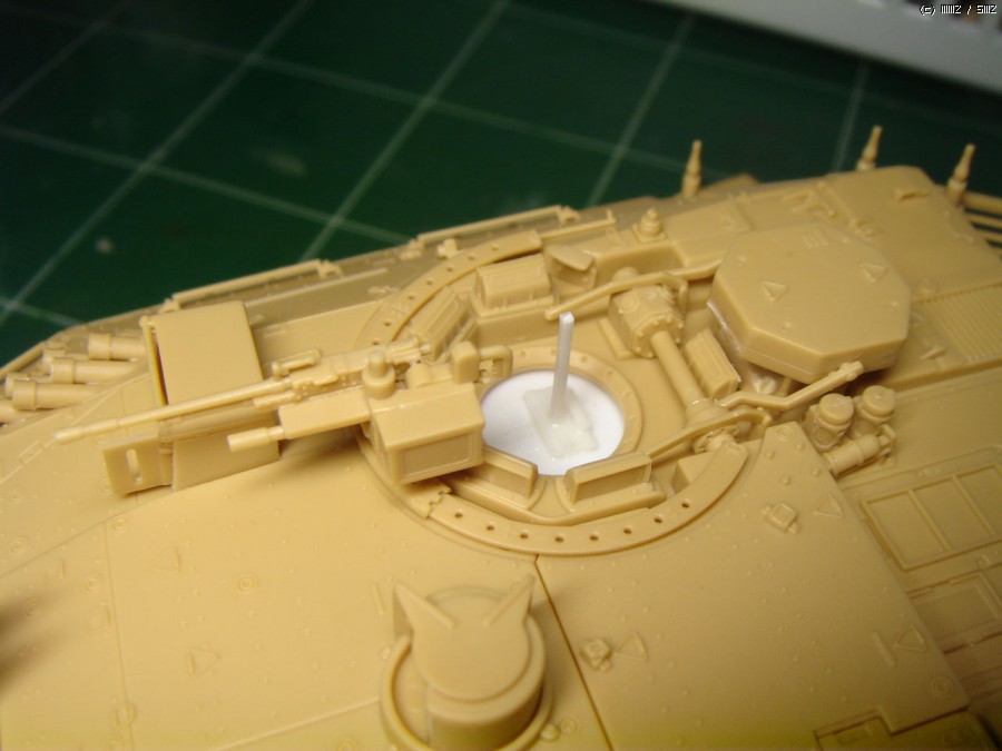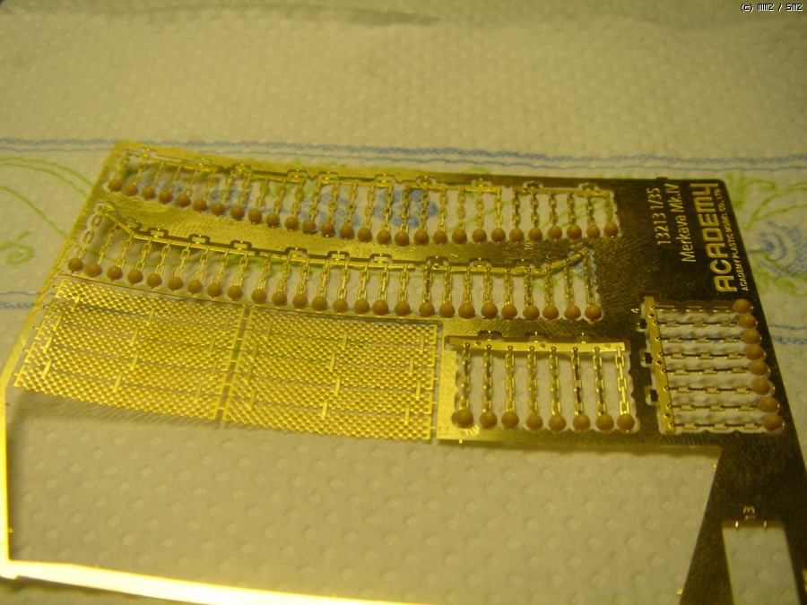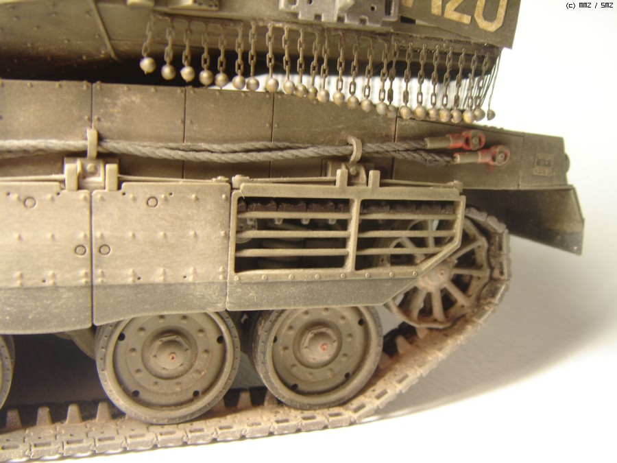 아카데미에서 처음 시도한 에칭과 인젝션파트의 조합인 체인커튼은 그 결과가 무척 훌륭했습니다. 다만 구슬자체가 차체상판에 끌리게 되어있다보니 좌우로 포신을 회전할때는 에칭사슬이 휘어지지 않도록 조심해야 합니다.