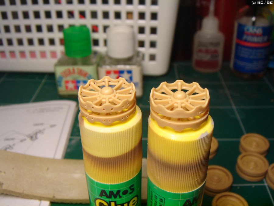 기본색과 데칼링 후에는 Hannants의 Flat vanish를 도장하여줬는데, 유용하게 쓴 것이 마트에서 파는 '칸쵸' 포장이었습니다. 끝이 점점 넓어지는 형태로 되어있어 포탑이 들어가는 구멍에 빠뜻하게 끼워지기 때문에 에어브러싱을 하면서 손잡이로 아주 안성맞춤이었습니다 ^^