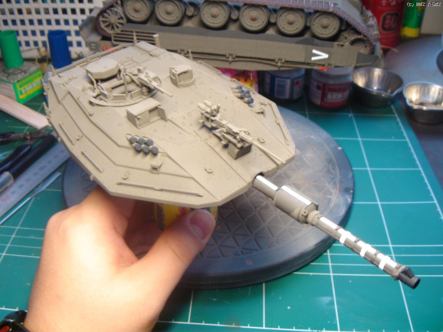 이스라엘군 포신의 특징인 이 흰 띠는 왜 이렇게 해놓는지 모르겠지만 나름대로 포인트가 되는것 같습니다. 데칼이 잘 나왔으니 작업하는데 큰 어려움은 없었습니다.