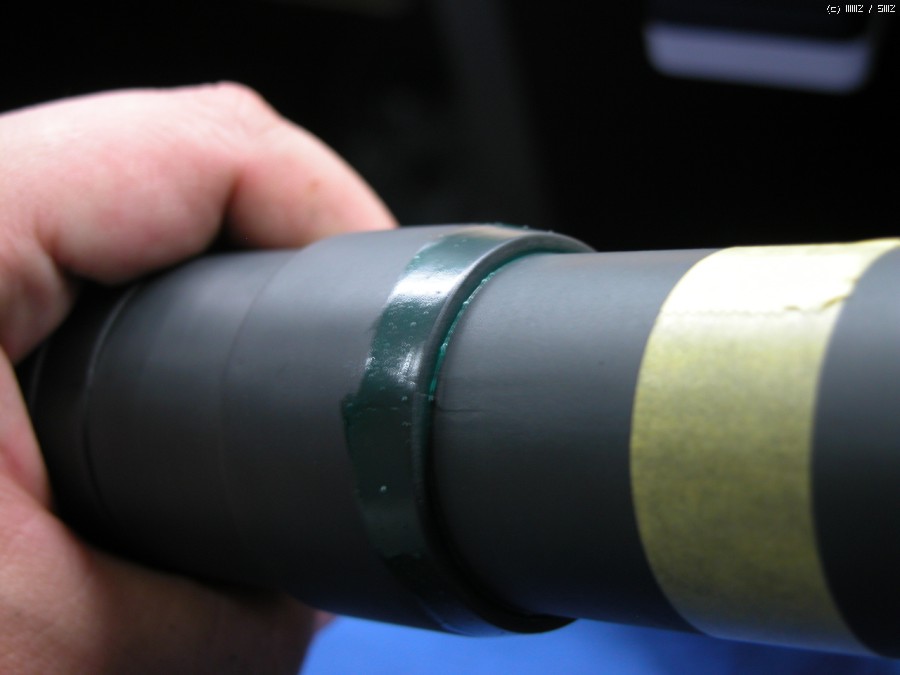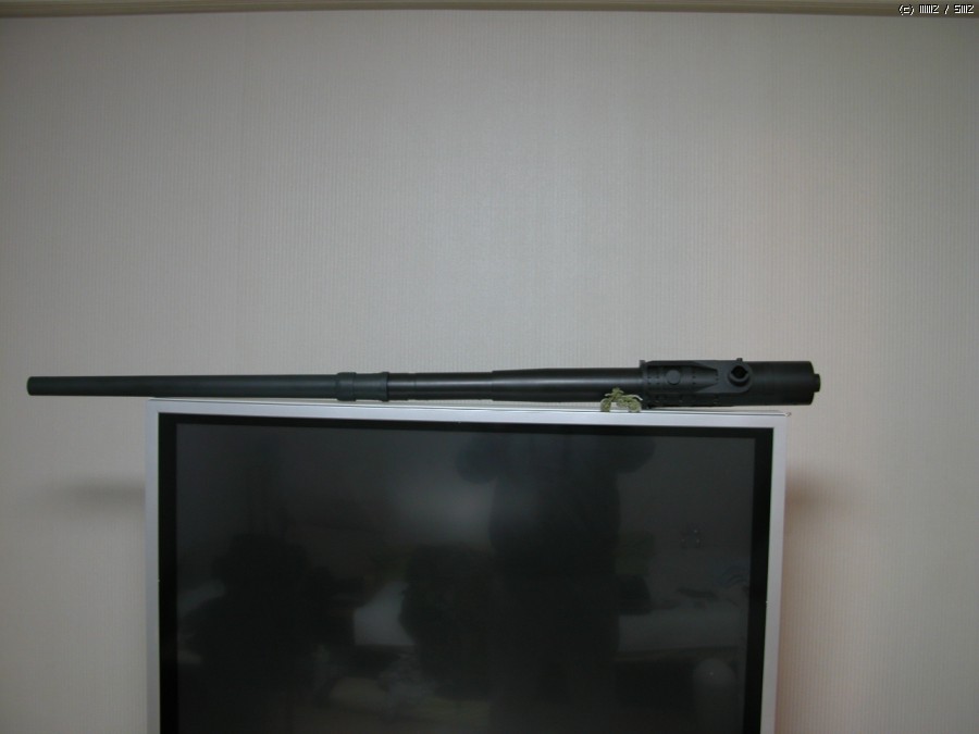 포구. 강선이 별도의 부품으로 되어있고 이걸 집어 넣으니 포구가 다시 쩍 갈라져서 재 수정했습니다., 화이트퍼티 사용.
