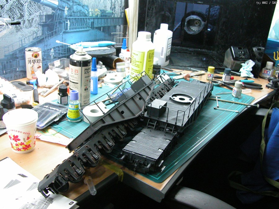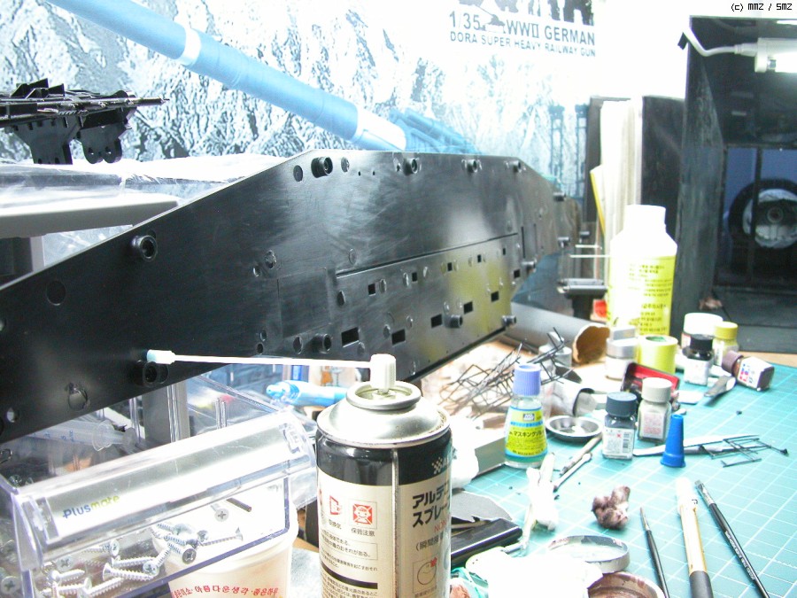 하체 도장 후 녹표현 중. 워낙 대물이다보니 제작과 도색, 웨더링을 병행해야 합니다.