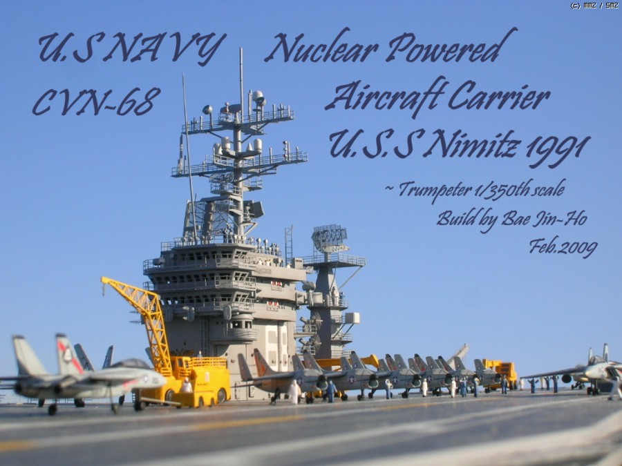 이 일 이후(?) 한동한 책장 위에서 보관하다가 얼마 전에야 선체에 웨더링 좀 더 추가하고 함재기와 수병 인형등을 올려 마무리한 트럼페터 1/350 스케일 니미츠입니다. -ㅅ-; 배만 띡 올리기 뭐해서 해면 효과도 처음으로 합성해봤는데 역시 어설프네요...^^;;