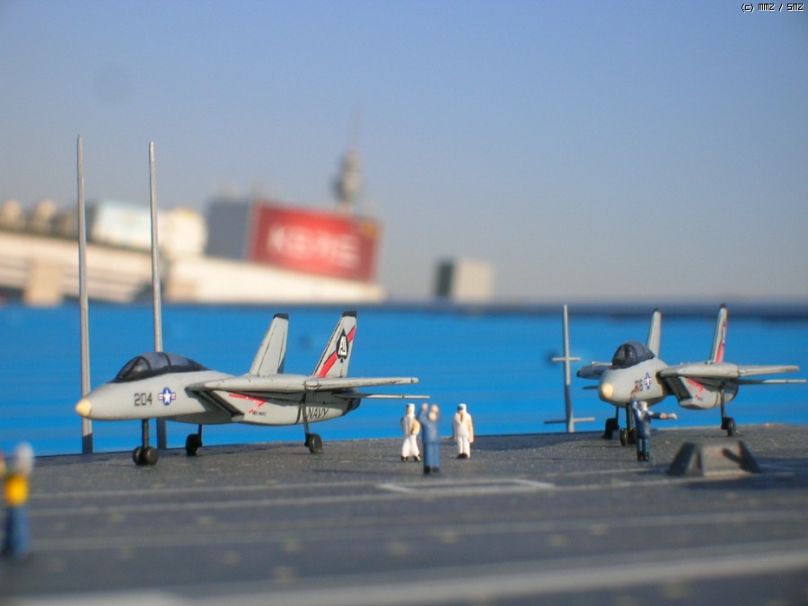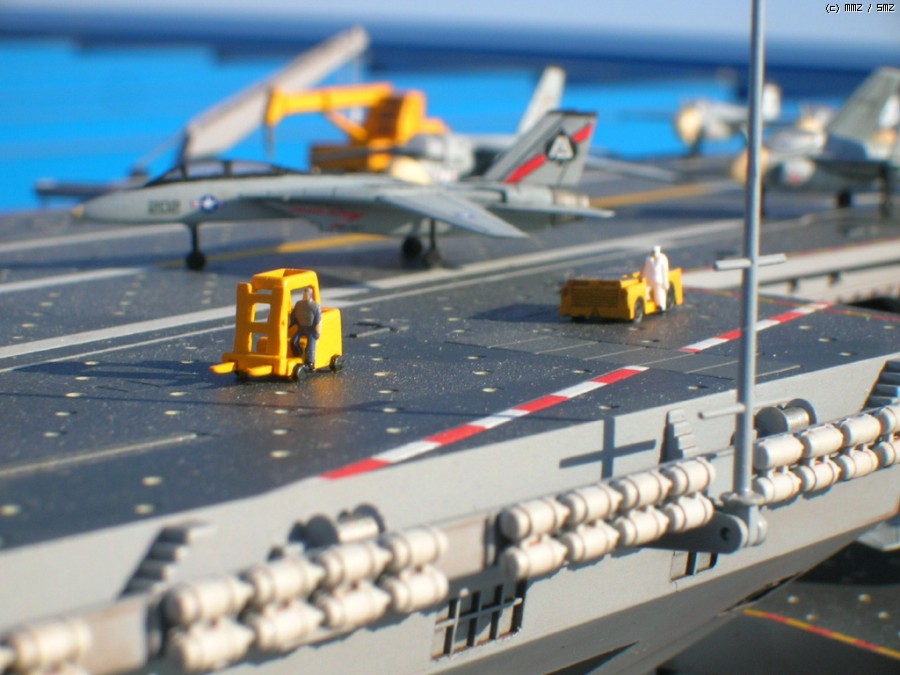 함재기 숫자가 딱 키트에 들은 정도만 만들다 보니, - 참고로 키트는 75년 버전으로 팬톰 등 70년대 기체가 22대 들어있습니다, 저는 동호회 지인의 제공으로 F-14와 A-6등을 좀 더 얻었는데 하여간 그래도 서른대가 안되더군요;;; - 발함 시추에션 비슷하게(...) 함재기를 배치해놓았는데 그러고 보니 언더샷으로 찍으니 뱅기들은 안보입니다;;;