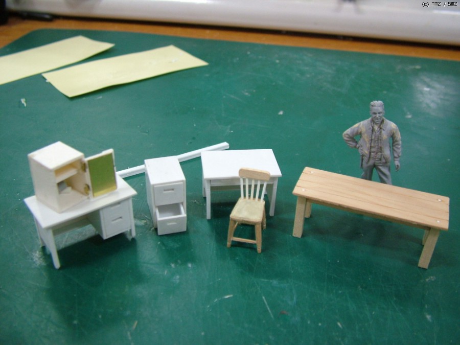플라판과 배스우드로 만든 책상, 캐비넷류...