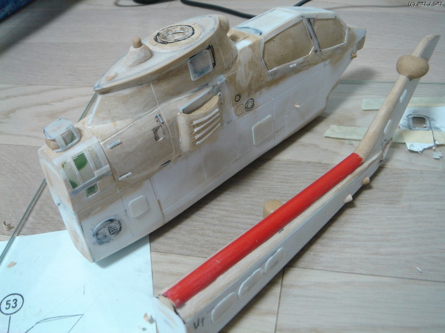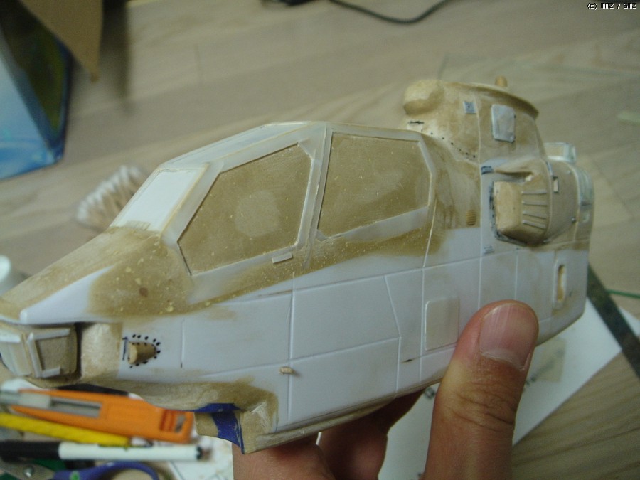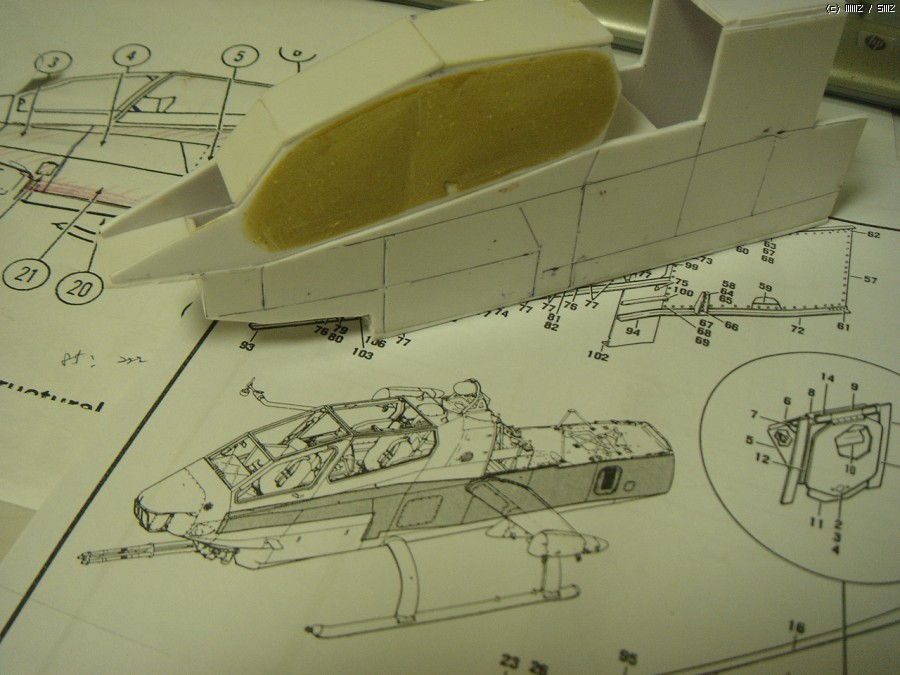 ah-1s는 거의 굴곡없는 평편한 동체를 하고 있습니다만 여러 사진을 비교해 보면 부분적으로 약간의 볼륨을 가진 부분이 있습니다. 사진을 보면서 조금씩 잡아주었습니다.