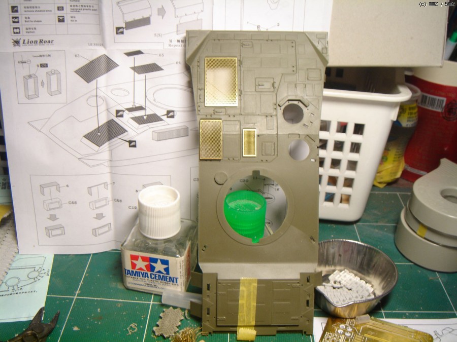 에칭세트에 큰 공간을 차지하고 있는 그릴의 안정적인(?) 재현을 위해 원래 키트의 그릴부분을 모두 따낸 후 에칭파트를 적용하였습니다.