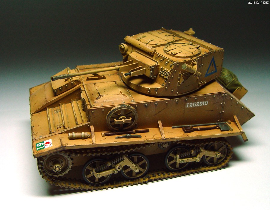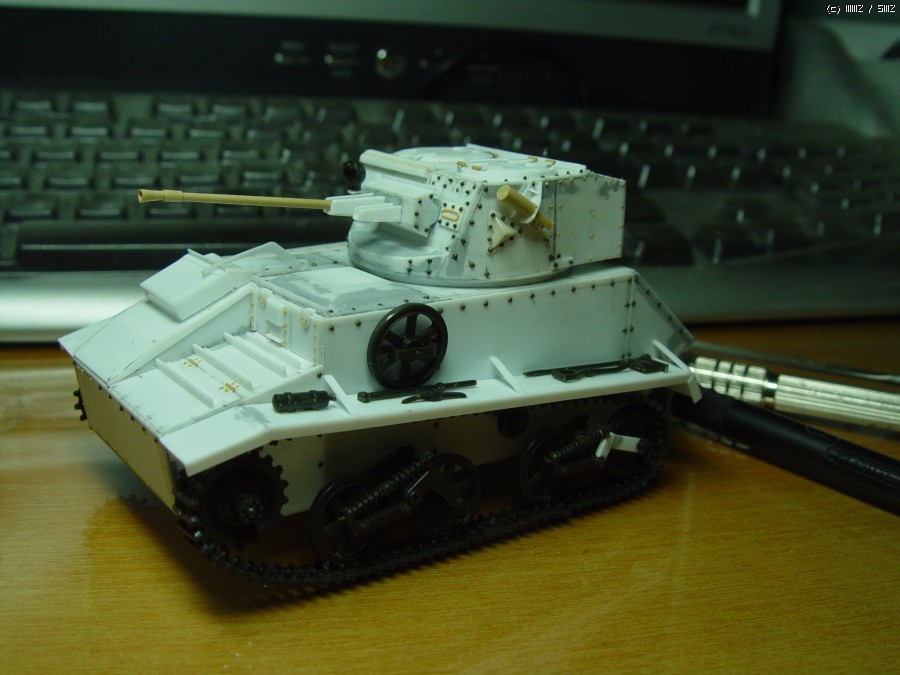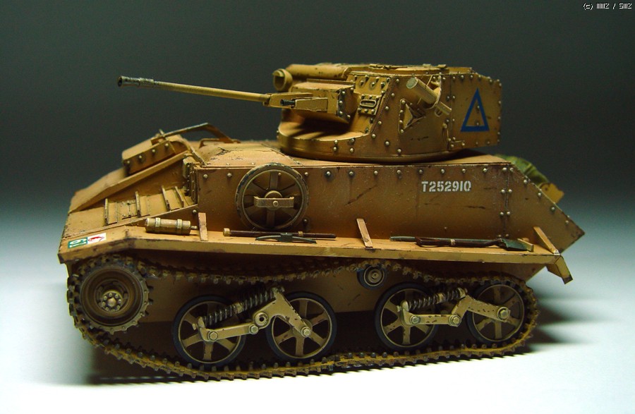 감기와 직장생활로 몇달이나 걸려서 완성된 비커즈 경전차입니다. 차체는 플라판으로 만들고 휠과 서스펜션 그리고 트랙은 타미야제 유니버셜 캐리어에서 가져왔습니다. 때문에 스프로켓과 트랙은 영 맘에 안드네요.
