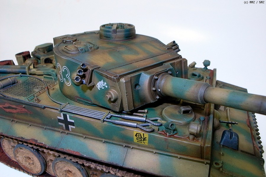 우측 측면의 기이한 녹자국은 뭐 좀 허전해 보이길레 걍 포탄한발 스쳐가서 도장이 벋겨진 다음 주위로 서서히 녹슬어간다는 정말 만화적인 가정으로 붓으로 그려봤습니다.